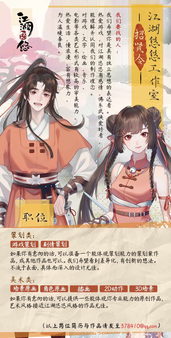 书童今天正儿八经的跟大家聊个事情,近期如果有大侠对游戏行业感兴趣且想在武汉发展的话,可以瞧瞧我们,一起来做《》鸭~工作地点在武汉光谷,交通便利,工作室福利多多,具体岗位内容如下图: