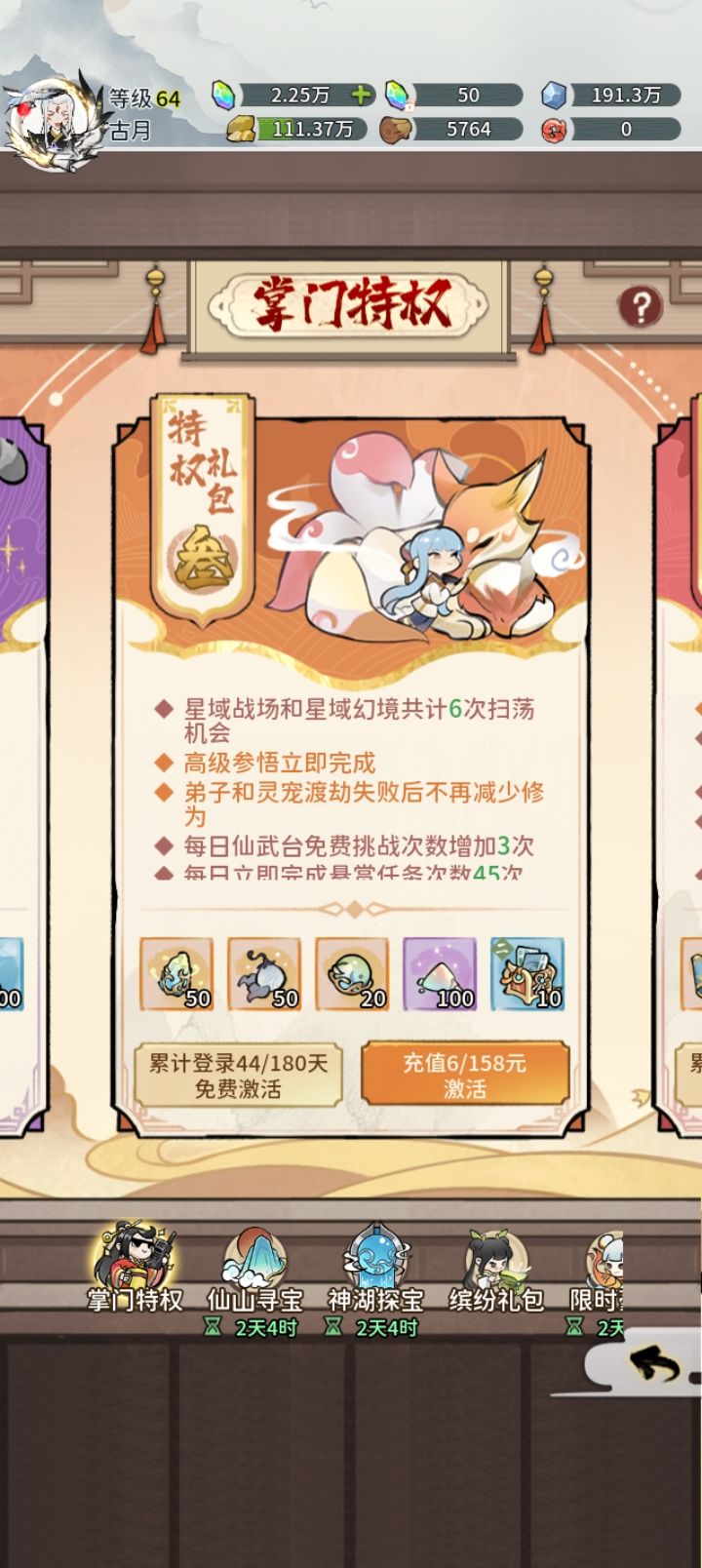 角色:升星要21个本体,真仙开始只推荐邀月当主c,主角辅助输出+挂件。 钓鱼:提升非常大,氪度也非常大。 时装:竞技仙晶主要用在这里,每月两套拉满,仙晶不足向别人收。 宠物和宠物图鉴:有多余资源就搞,只选高速的宠物,不影响普通玩家强度。 每日买两个鱼钩,点下免费符印。不定期活动的凌霄果和陨铁氪点。氪点非常多,只优先角色升星和飞升。然后就可以躺平收菜了