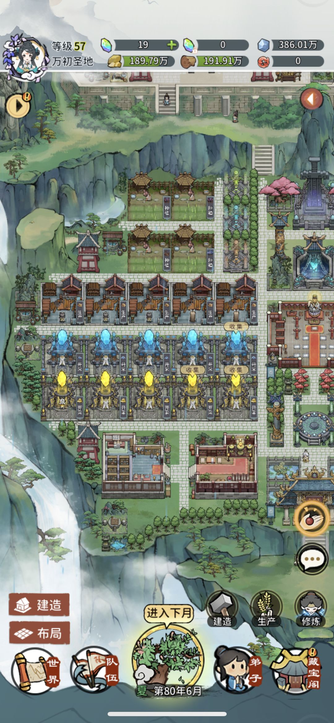 分享一下自己的门派布局图,总体来说还是以对称为主,兼顾各建筑功能与朝向,美中不足的是多建了一个厢房,有一点不协调,后面的场地开了应该就好了。算了下,最后一块场地,摆剩下的建筑,应该也够了。