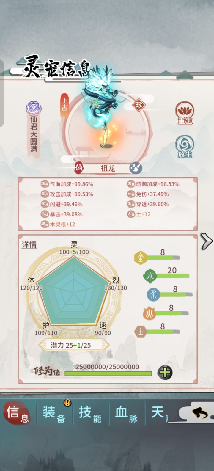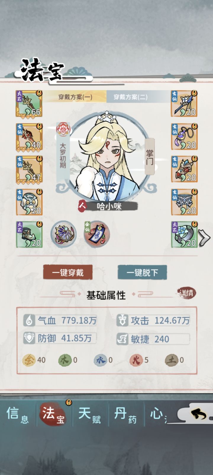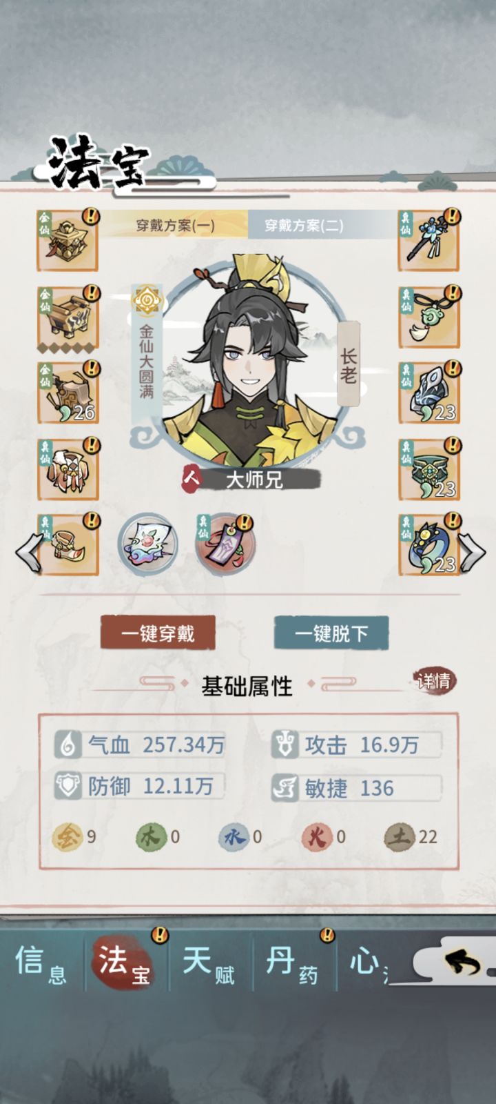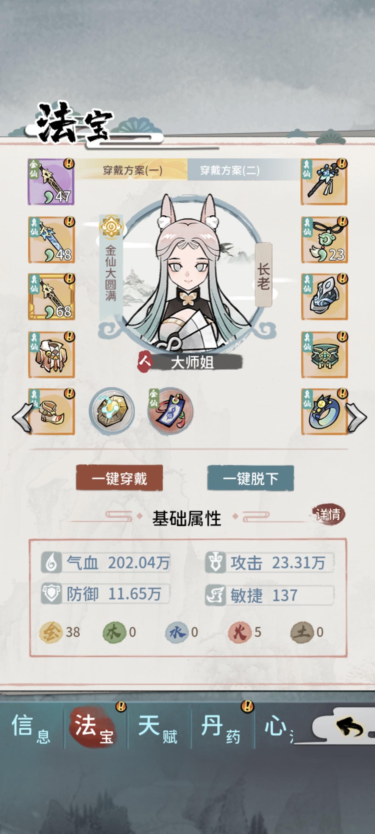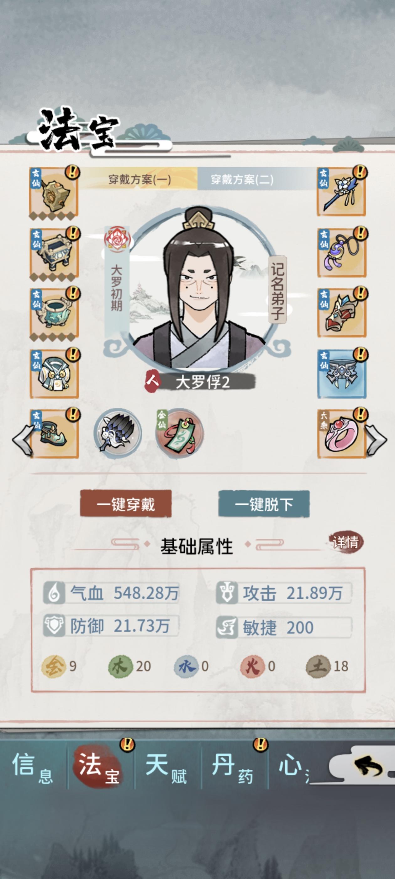 首先讲咱们月卡党或者豹子头玩家,开局掌门武道+炼器天赋必不可少,否则后期可能会导致无法完美炼制练虚或者合体装备。修为等级划分:练气<筑基<金丹<元婴<化神<练虚<合体<大乘(未开放)<渡劫(未开放),目前最高修为等级是合体大圆满。功法等级划分:黄<玄<地<天<荒<洪<宙<宇黄级:筑基初期,根骨4玄级:金丹初期,根骨6地级:元婴初期,根骨8天级:化神初期,根骨10荒级:练虚初期,根骨1