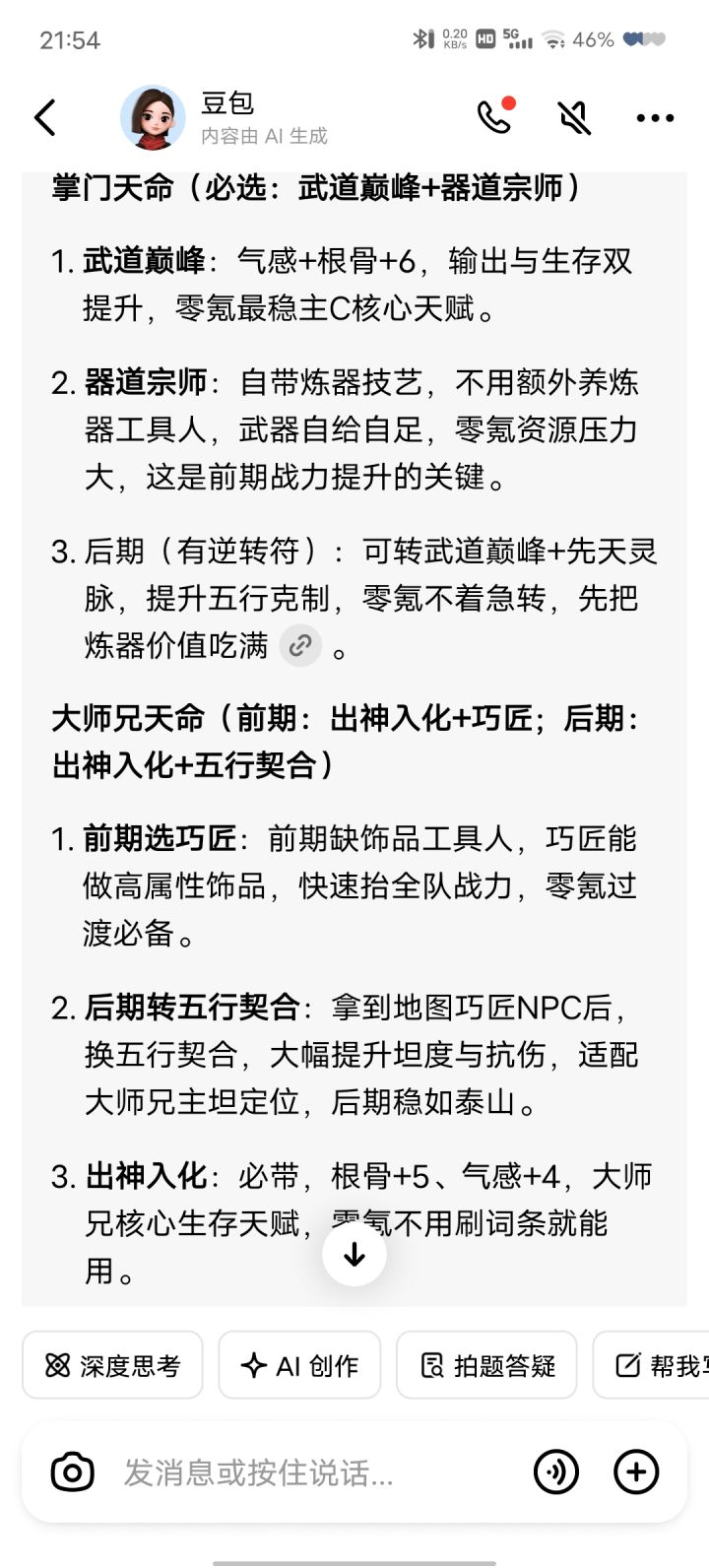 鉴于开局选择有很多争论,我推荐的玩法比较适合推图爽流,能更快地到达44级,如果纯粹是为了求稳的话,掌门可以选武道巅峰和器道宗师,大师兄选制衣或者巧匠。武器和武巧或武衣,前期肯定会被卡一个工具人,导致进度拖慢,大家根据自己的需要择情选择。当然选择购买人物的小氪玩家,可以用两张广纳贤才,招出来就有化神大圆满,根据需要推荐定向选择制衣或者巧匠,如果氪大师姐的话,建议定向选巧匠,就可以解放大师兄了。然后传