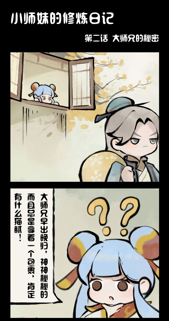 掌门们好鸭ヾ(◍°∇°◍)ノ゙最近大师兄非常不对劲,总是拿着一个包裹早出晚归的,他肯定有什么猫腻!于是趁着某天大师兄出门的时候,小师妹偷偷溜进他的房间。没想到竟发现了他的大秘密!!!具体是什么呢,一起来看看叭——