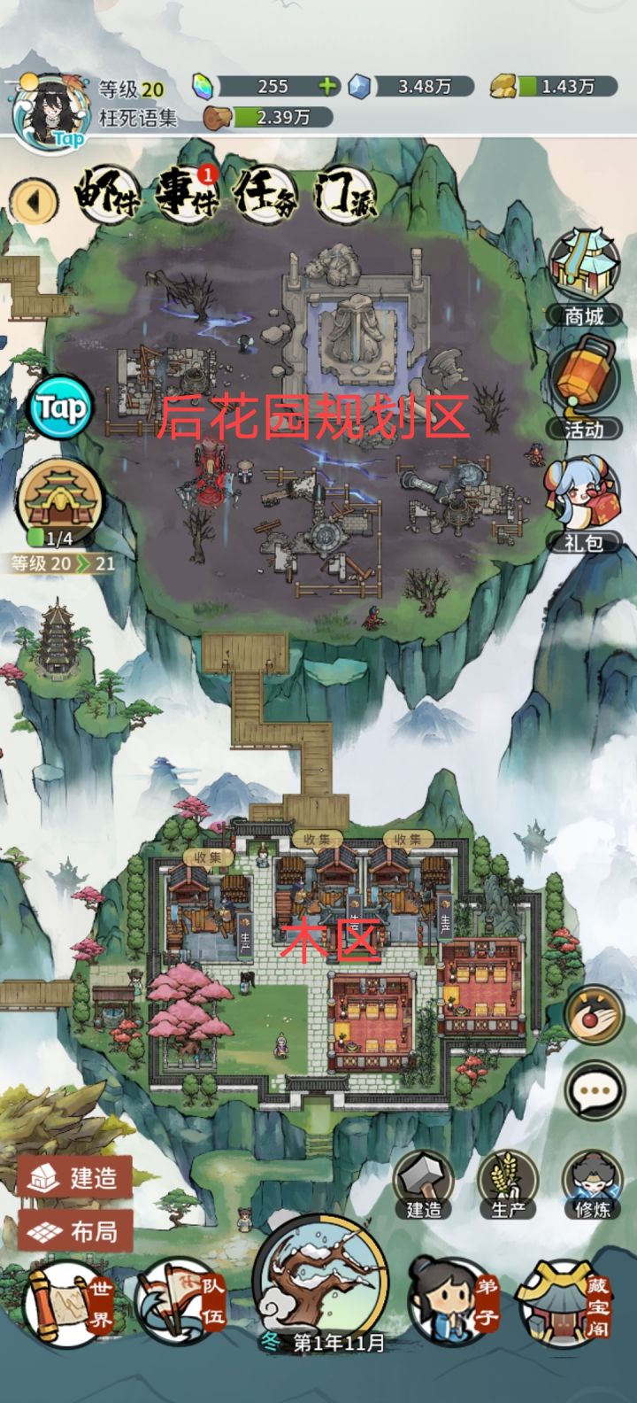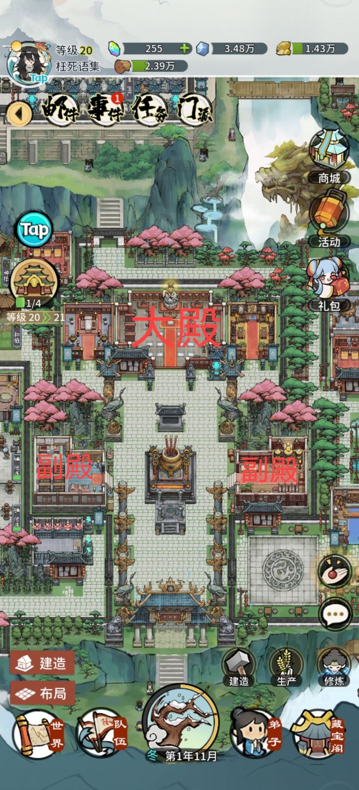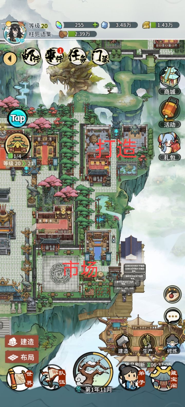1.拍卖会在每年的八月,城市里召开。(任务会告诉你在哪个城市)2.通天塔在宗门右上角 ,开局二月必出六维上十的弟子。3.啥时候跳月份,随你。(注意:每月任务先做了在跳,做不了的可不做)4.找不到任务地点在哪,就点左上方任务有指引。5.有时间多升升灵石矿,石矿,药园等建筑级别。6.六维上十(气、根某一个10+或者9+,同时潜力也是越高越好)的都能当主力队。(注意:根骨影响肉度,气感影响伤害