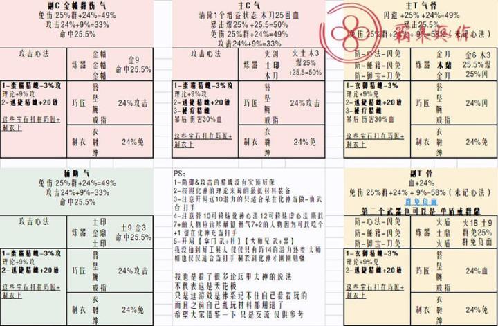 攻略汇总表(五行,潜力,装备推荐)