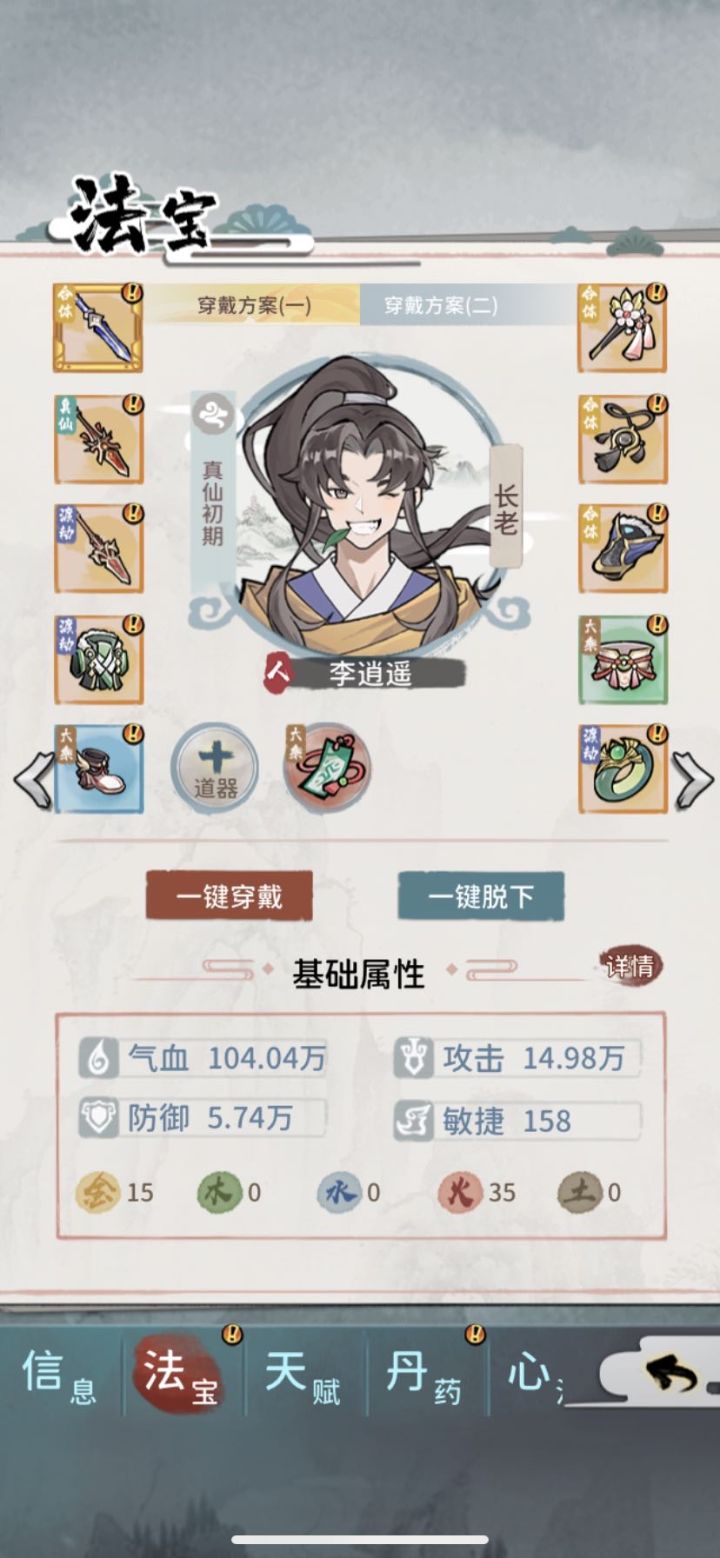 一、关于压缩装众所周知,压缩装备就是高境界装备压缩到低境界,战力数值高于普通装备,从而提升低境界弟子战斗力的目的。最简单的压缩装备就是炼制装备时用隐息-1精魄,达到降低装备使用一个等级的目的。还有就是用炼器14的 加炼虚器胚,加4个普通+3属性的材料,有概率炼制出化神+12属性的压缩装,这是不用隐息压缩的方法。接下来就是3压,用炼器13弟子,合体器胚,4个+5属性的稀有材料再加一个其他属性