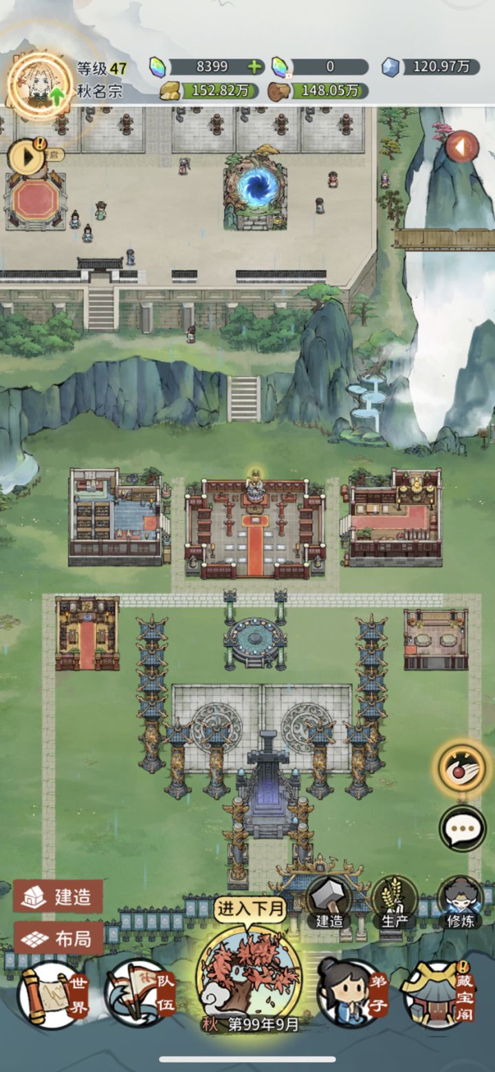 1.藏宝阁:俗称背包。小小师妹和小师弟不见了,可以先去包里看看。2.拍卖会:每年八月开始,持续三个月。(拍卖地点任务会告知,巫蛊寨的第一次八月拍卖任务有bug,进入后显示没有开启,无法参加)3.开局二月会刷一个六维优秀弟子。前期剧情弟子可以用来开图升级,后面遇到好资质弟子可以传功。(开局三主力配合俩随机)4.通天塔:滑动到宗门最上面会看见。5.跳月份,可随意。(每月任务,可做可不做,建议还