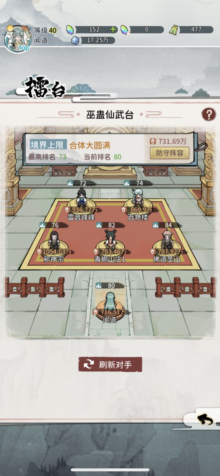 关于PvP ,阵法绝对不要用 有三个人站在一列的,直接爆炸。附上我仙武记录,我掌门是武灵玩闪避流,闪避堆到50%(没到40以上我不敢保证有用)和大部分队伍不一样。就是掌门放在首位,高攻高闪避,攻守兼备。这样可以多出一个输出人物,而肉就可以当辅助用。因为作为我们微氪或零氪,只有大师兄和掌门是最好输出必须作为主力,是无法再损失一个去当肉的。这样武灵➕闪避流是可以越境界打比自己高一百万战力,进前百没问题。