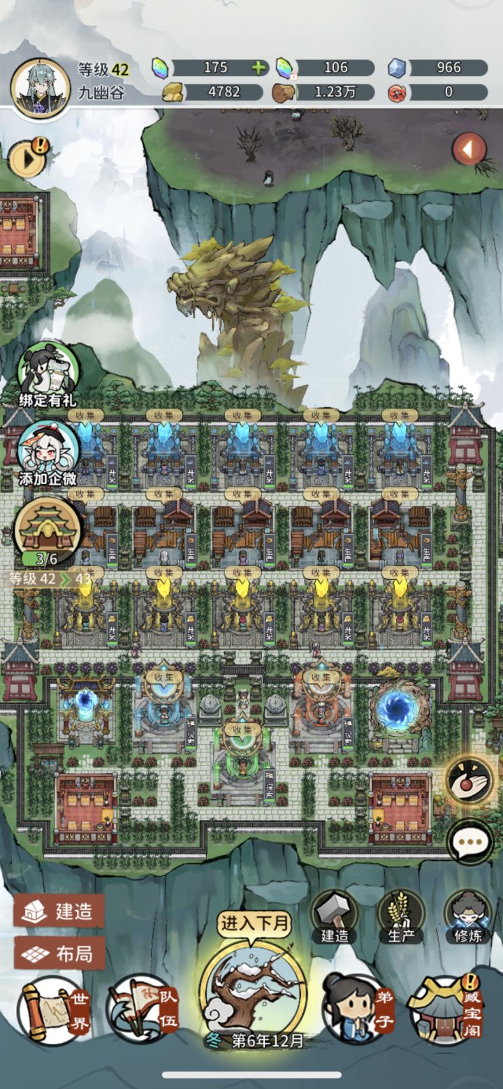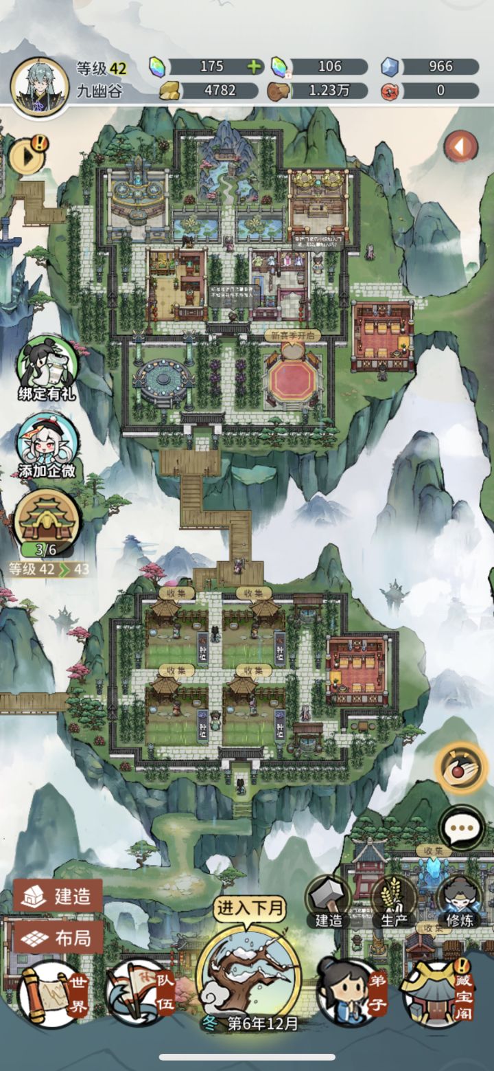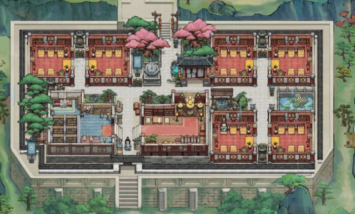 将资源建筑和功能建筑归纳整理后放同一区域,可以让各位掌门一回门派就能第一时间进行“收获+制造”和其他工作安排,省时省力。其他较少用到的功能建筑统一放大堂以下,各掌门可按自己习惯换位置,各大小装饰同理。大方向已经定好,各掌门可以直接照搬,以后就算有新增建筑,布局改动起来也省时省力