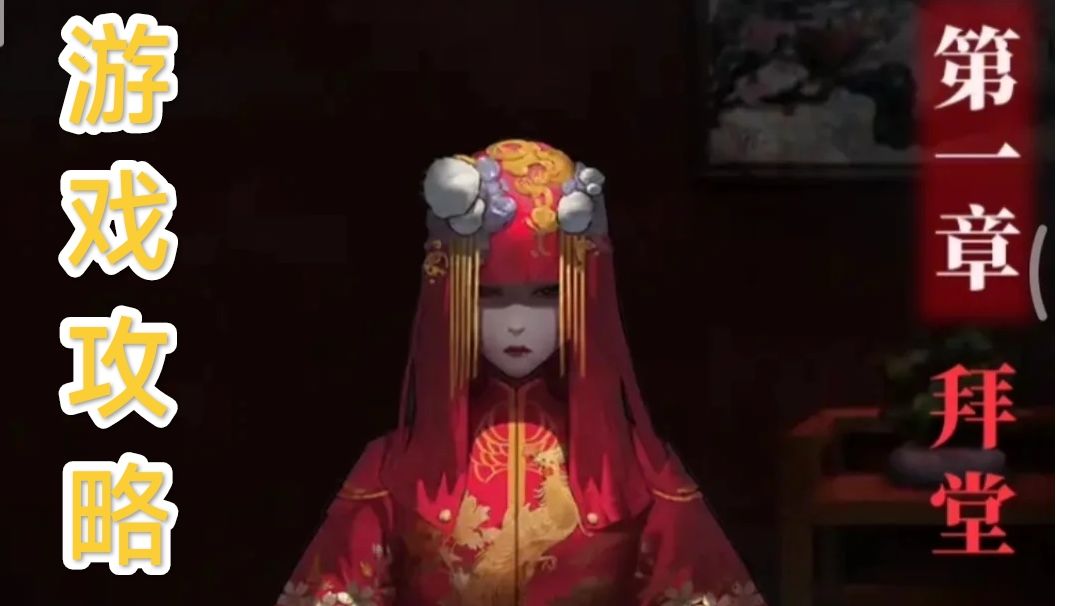 第一章:拜堂 1.拜堂屋: 二老遗像中间桌子:蜡烛(直接获得)、冥钞碎片、蝴蝶匣子 2.饭桌屋: 桌上书:一子二丑三寅四卯五辰六巳七午八未九申十酉十一戌十二亥 板凳上六位数字密码箱:由红灯笼图标可知线索在拦路童子所在厅堂的红灯笼上 发光的麻将桌:从散落在麻将桌上的三个麻将知密码是发、三杠、二杠,打开箱子得钥匙 窗户旁边有个四位图形密码柜 点屏风,点放衣服的架子,掉落火柴 屋里还有一个用红布做的假火