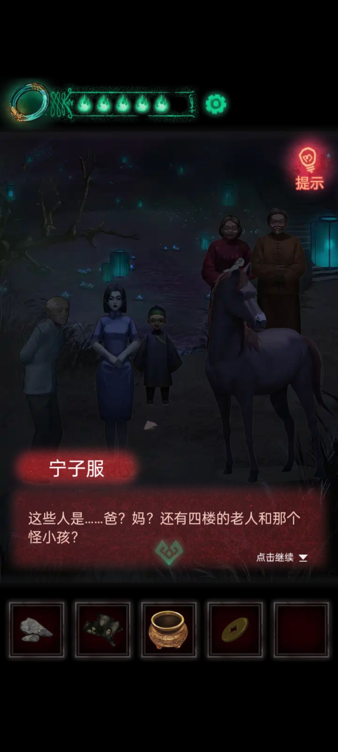 通关了。绝对推荐,无论是美工还是剧情,这个优秀的作品都值得每个人去试一试。(我要好好地夸夸作者)解谜难度根据关卡的推动增加,越到后面则越难。游戏剧情主要围绕主角宁子服为了找他的未婚妻而引发的一系列奇闻展开,整个剧情充满了中国元素,包括阴阳,地府,鬼节,五行八卦,鬼门关,黑白无常,皮影戏等传统中华元素,当然里面也包括了中国曾经的腐朽文化,并深深讽刺了这种糟粕文化。 美工极佳,气氛极佳,剧情极佳,玩家