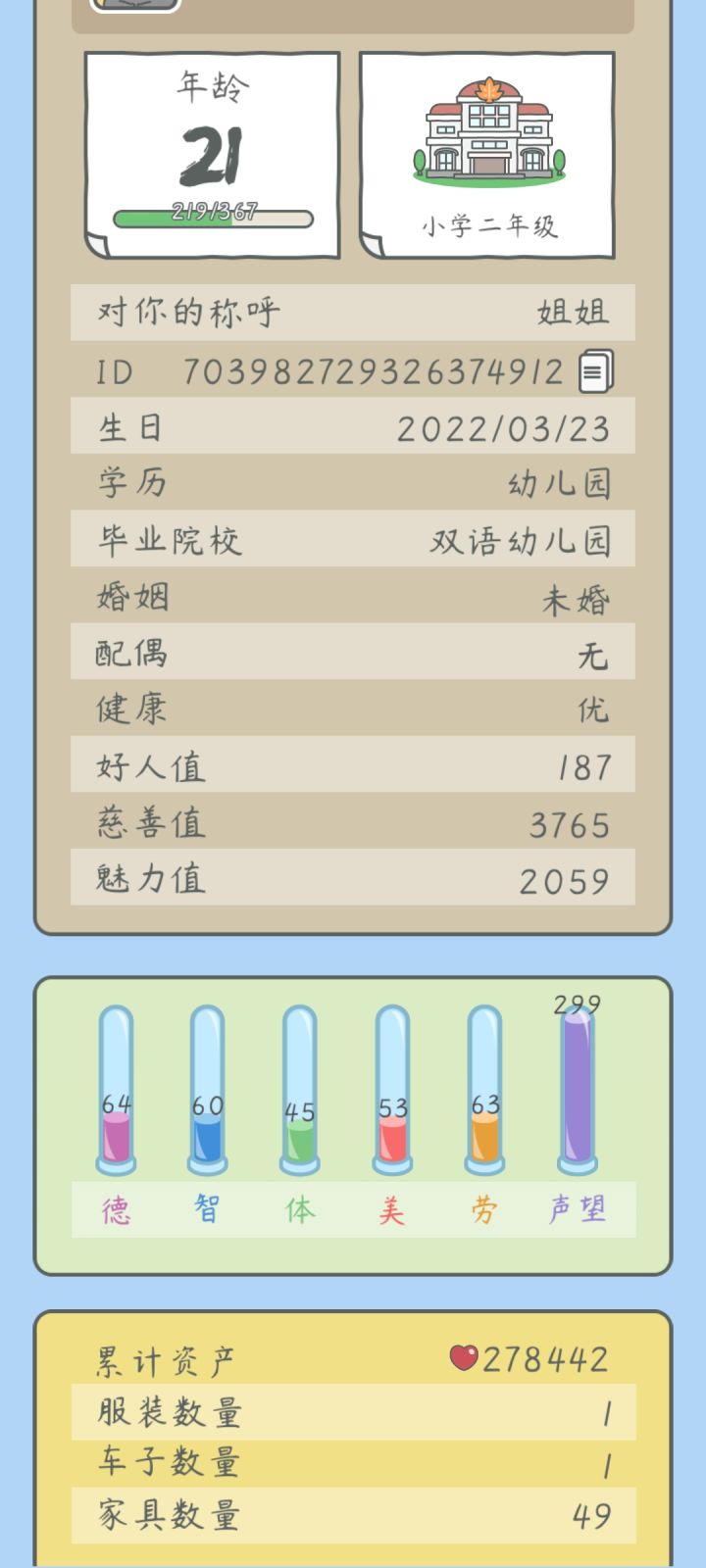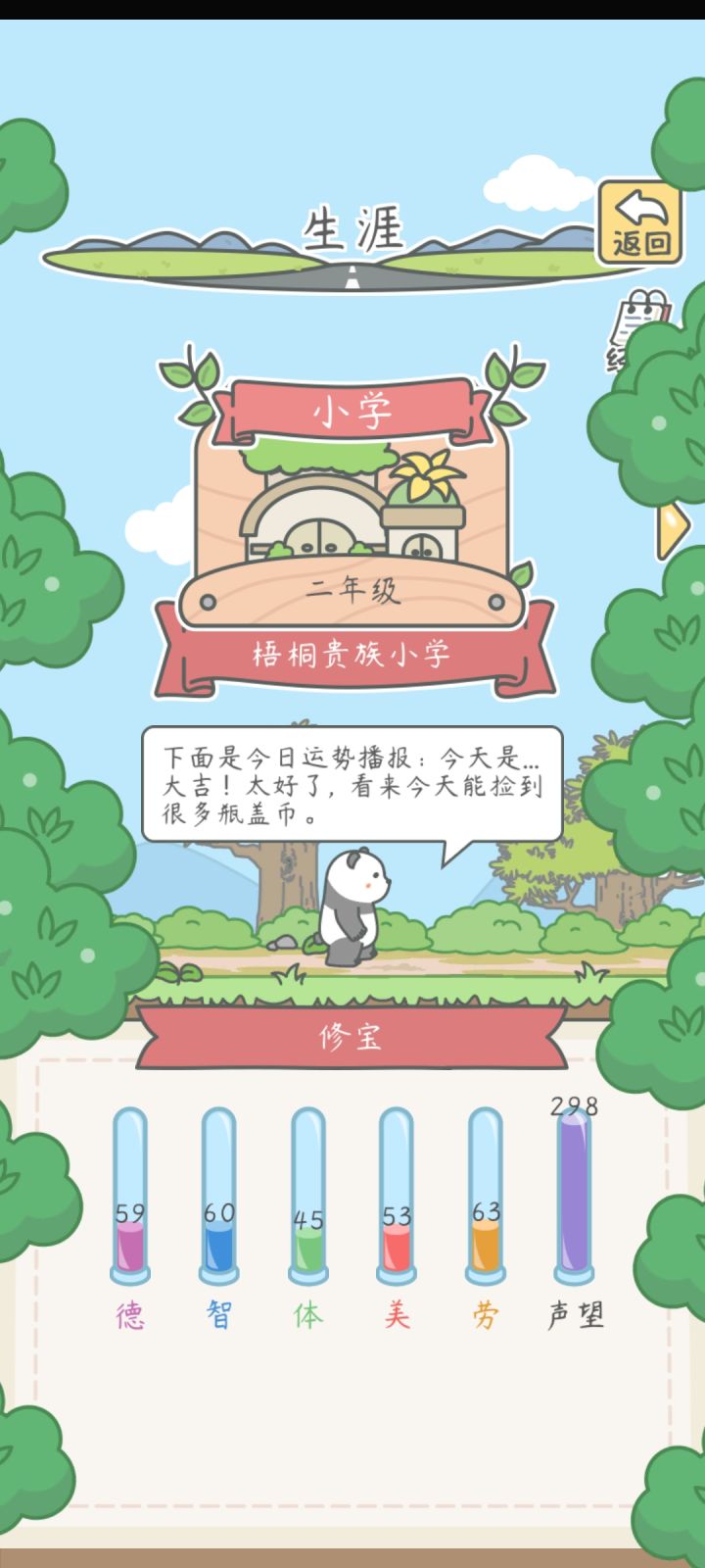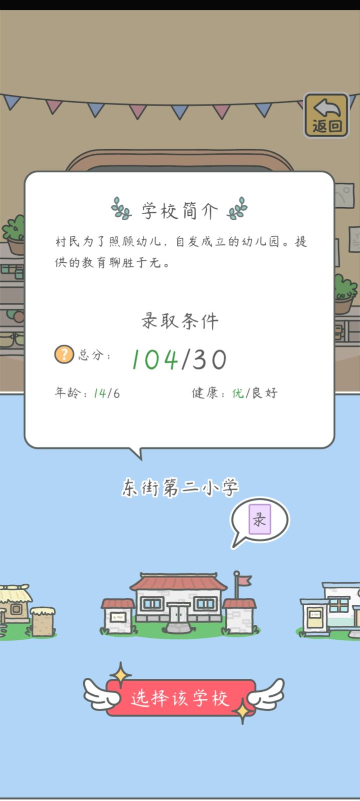 2.小学读梧桐贵族小学,入学没花钱(保姆费要550瓶盖,但是我和另一玩家没有被扣,其他玩家反映被扣了,不知道是不是bug,大家酌情考虑),课程有+2+3+4+5+6,价格是400-800-1500-3000-5000,升学条件自己看“下一年级”哈