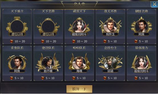 玩游戏不进名人堂,与咸鱼何异?万人膜拜的感觉就是爽,不管怎么样,我得先肝一个再说,战力竞技什么的交给大佬,采集、剿匪我看不错,建议你们也一起肝一下