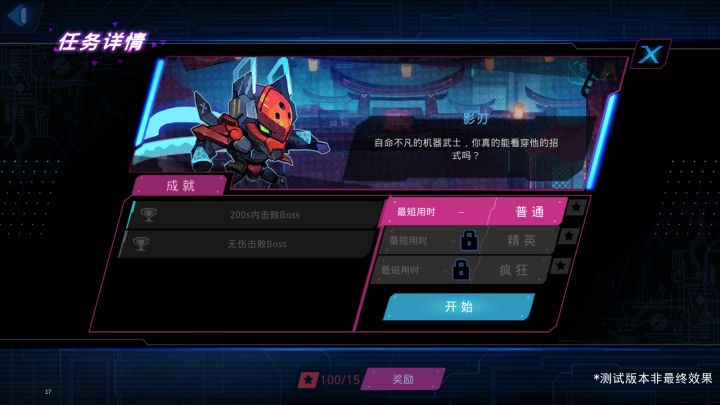 迅疾如风的脚步,变幻莫测的招式,隐于暗处发动的致命攻击。名叫「影刃」的红色机器武士在夜色中,将它的杀手锏安静而致命地投向闯入此地的外来者。第二关BOSS「影刃」信息曝光:隐藏于夜色与夜雨间,「影刃」一瞬现出了杀意的寒光。BOSS「影刃」战斗解读:「影刃」有着多变的攻击,让你不得不保持紧张、专注地进行战斗。我们在这里介绍它的几种基础攻击:「影刃」会在极短时间内往复穿梭并留下移动路径,极短