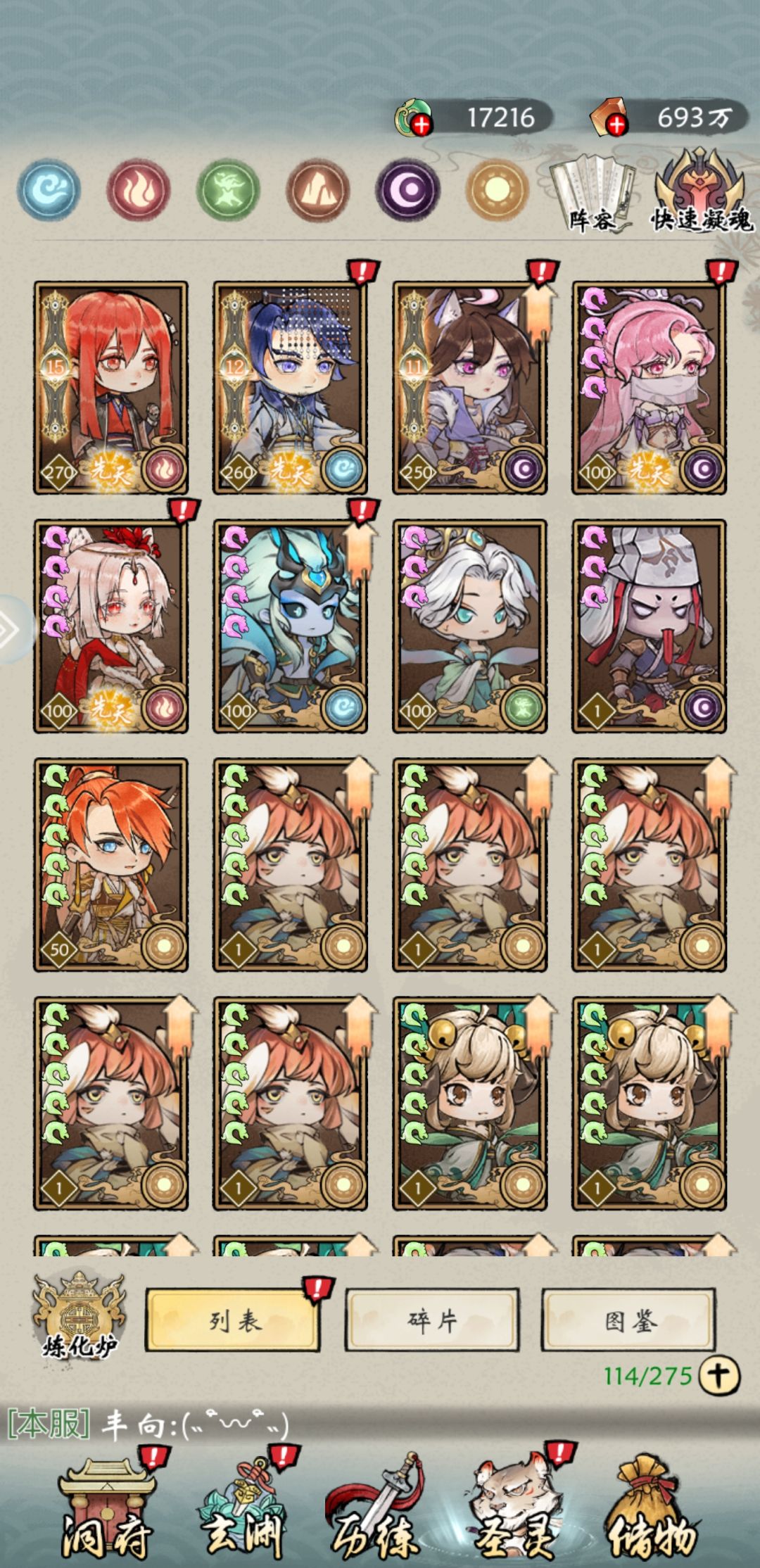 第一期,开局篇 开局角色选择必选旱魃,没有之一。十连抽没有换号重刷,只要旱魃,高氪不用管。 开区最多的是平民和小氪,小氪指月卡,季卡党。有了旱魃之后把所有资源全部堆到旱魃身上,切记。前期最好拿的先天圣灵有穷奇和琼霄,这两圣灵正常发展就行,如果资源够升到十星,卡关的时候果断当狗粮喂旱魃。旱魃星级越高越好,不用管虚战力,闯关才是王道。 前期法宝抽不到朱雀甲最好就用加血量的,还有装备强化前期只强化四星衣