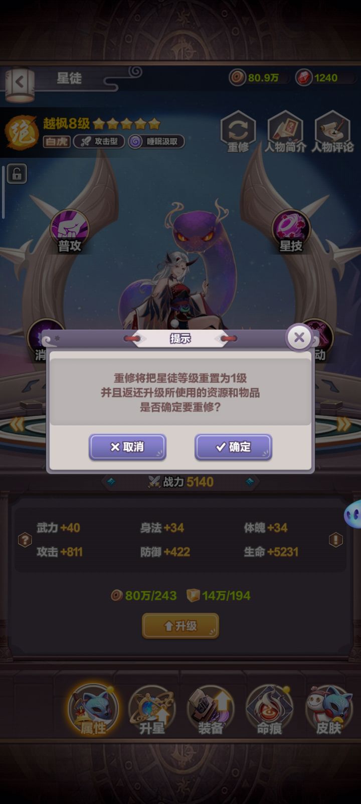 各位星主大大好~四象物语更新了【麒麟现世】大版本,除了主线冒险由自由探索的地图推进改为更轻松休闲的挂机关卡外,最大的改动就在星徒的养成上了,就来让我们一起看看新的星徒的养成玩法吧! 【升级】大版本更新后,四象移除了装备格的概念,等级、装备、命痕全部直接在星徒上进行养成,同时星徒的等级上限与星徒的星级息息相关,例如4星星徒最高只能升到60级。星徒的等级是可以无损重置的,所以在前期关卡开荒时,