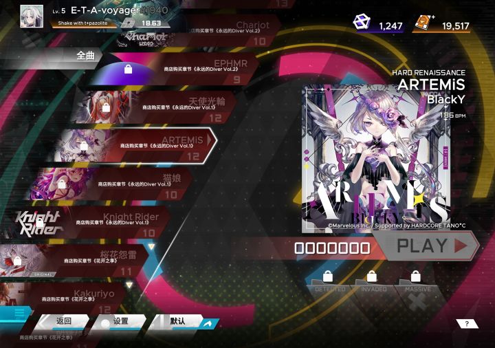 🎼 先说点好的方面吧,曲库肉眼可见的优秀😘这点我就多提几嘴(下面涉及到一些固有名词,对这部分不太了解的可以直接跳过)选曲方面wacca联动中黑y的那首ARTEMiS高速钢琴,还有天使光轮都是神中神,免费包里削除的Kronos,destr0yer都是名曲,还有一些单曲如On And On!,艺核felys都是比较有品味的,coflict是免费的这点让我比较意外(个人不是很喜欢,但这个多了解音游的应该是人尽皆知吧),还有很多熟悉的曲师名字,这里就不一一枚举了,(这里再特别提一下void,世征和隔壁arc最终魔王ttf的曲师,范式中他的那首慢速魔王真的帅,十分建议大家去听一下)