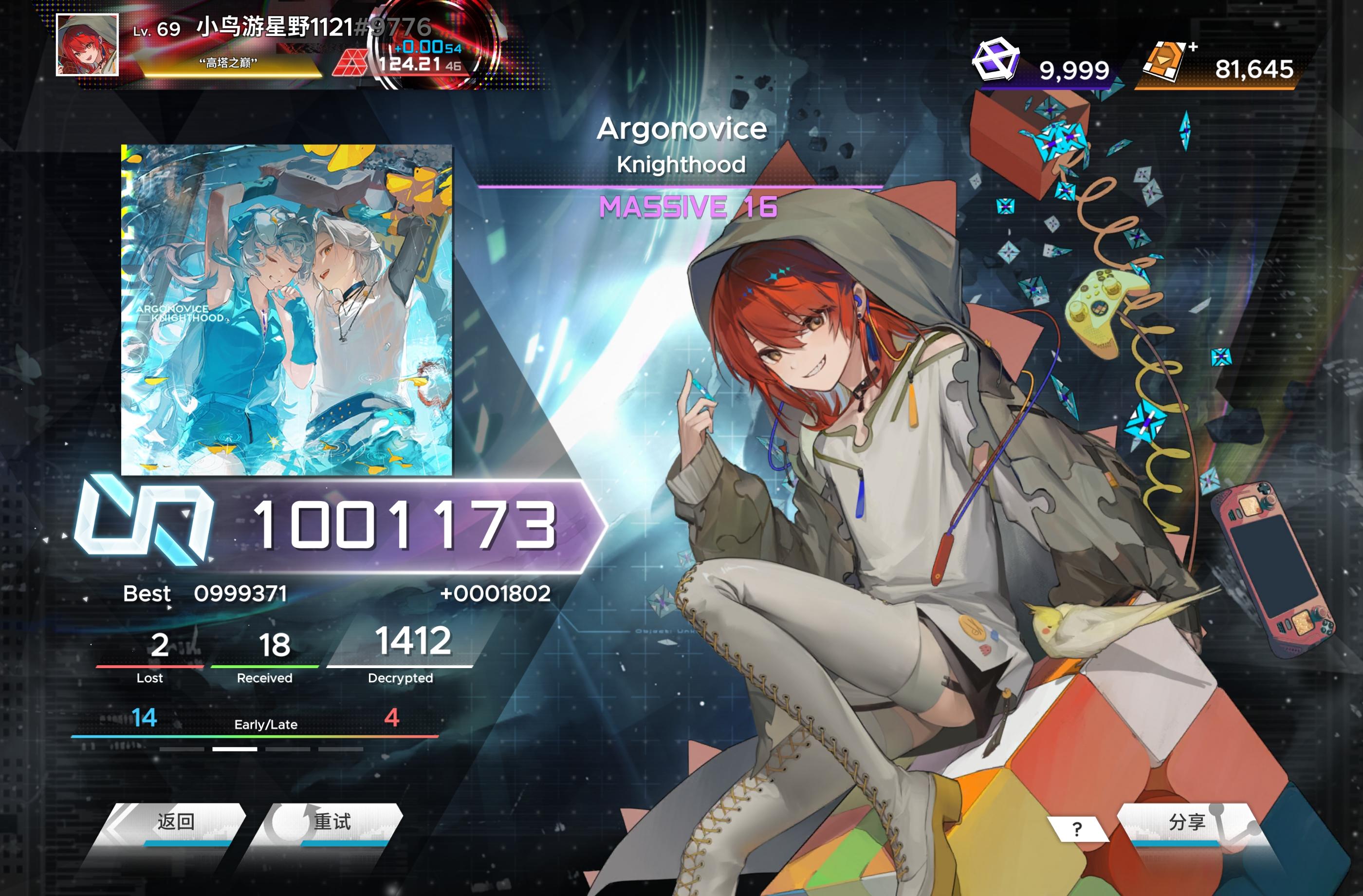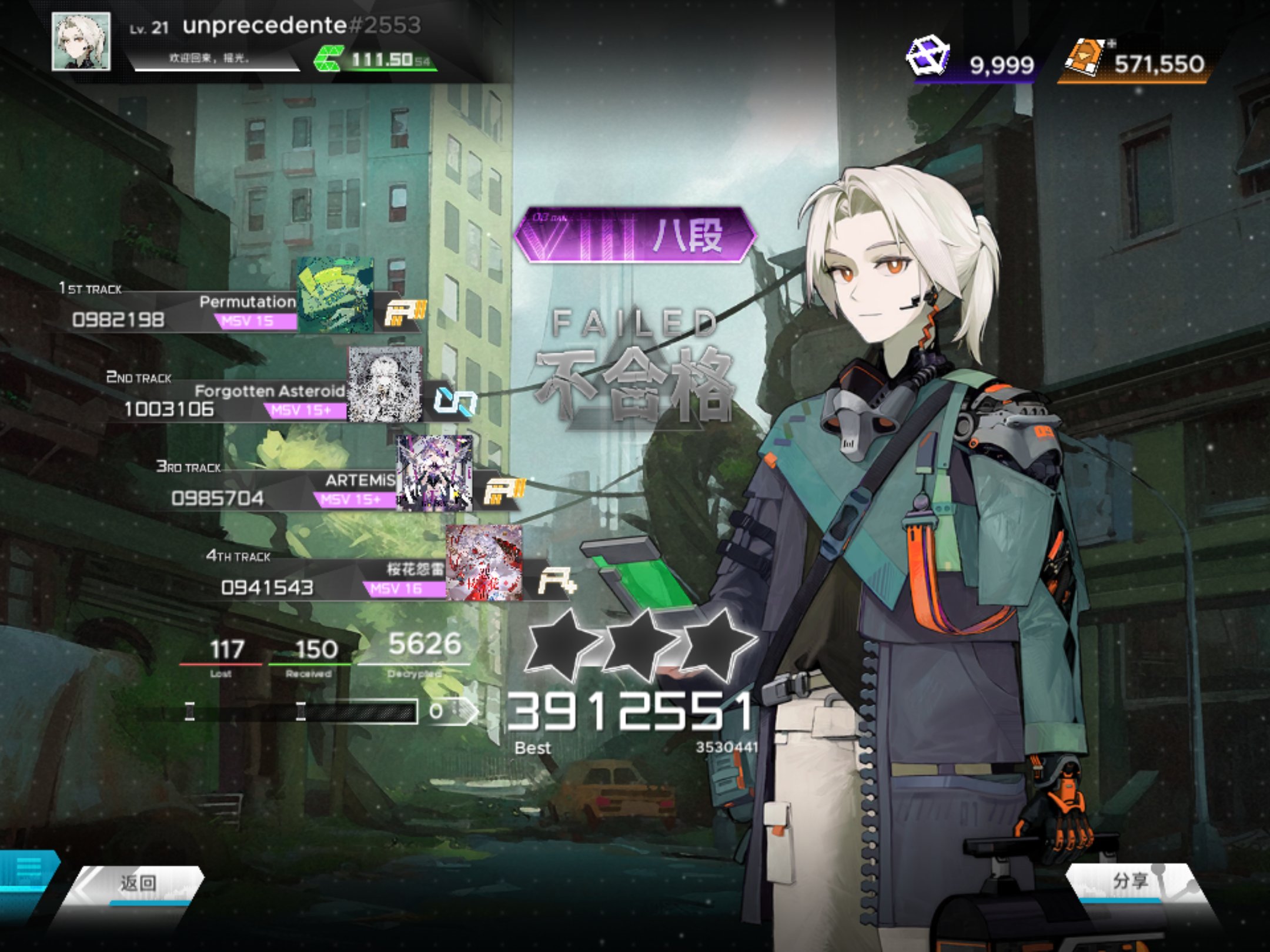浅算一下,上次玩还在8月份,现在玩范已经其中隔了4个月,但这次V4.0不仅爽吃chapter5 part1而且能把之前四个月中的两首免费单曲吃了,再加上新段位的曲子与等级曲,合计也能玩个7首+的新曲,零氪党也的吃范!这次葬送歌的RBT难度无疑是原MSV难度的底力位移加强,体感在16.3~16.4左右了,大概5pc吃下INF评,属于是小小复键了,明