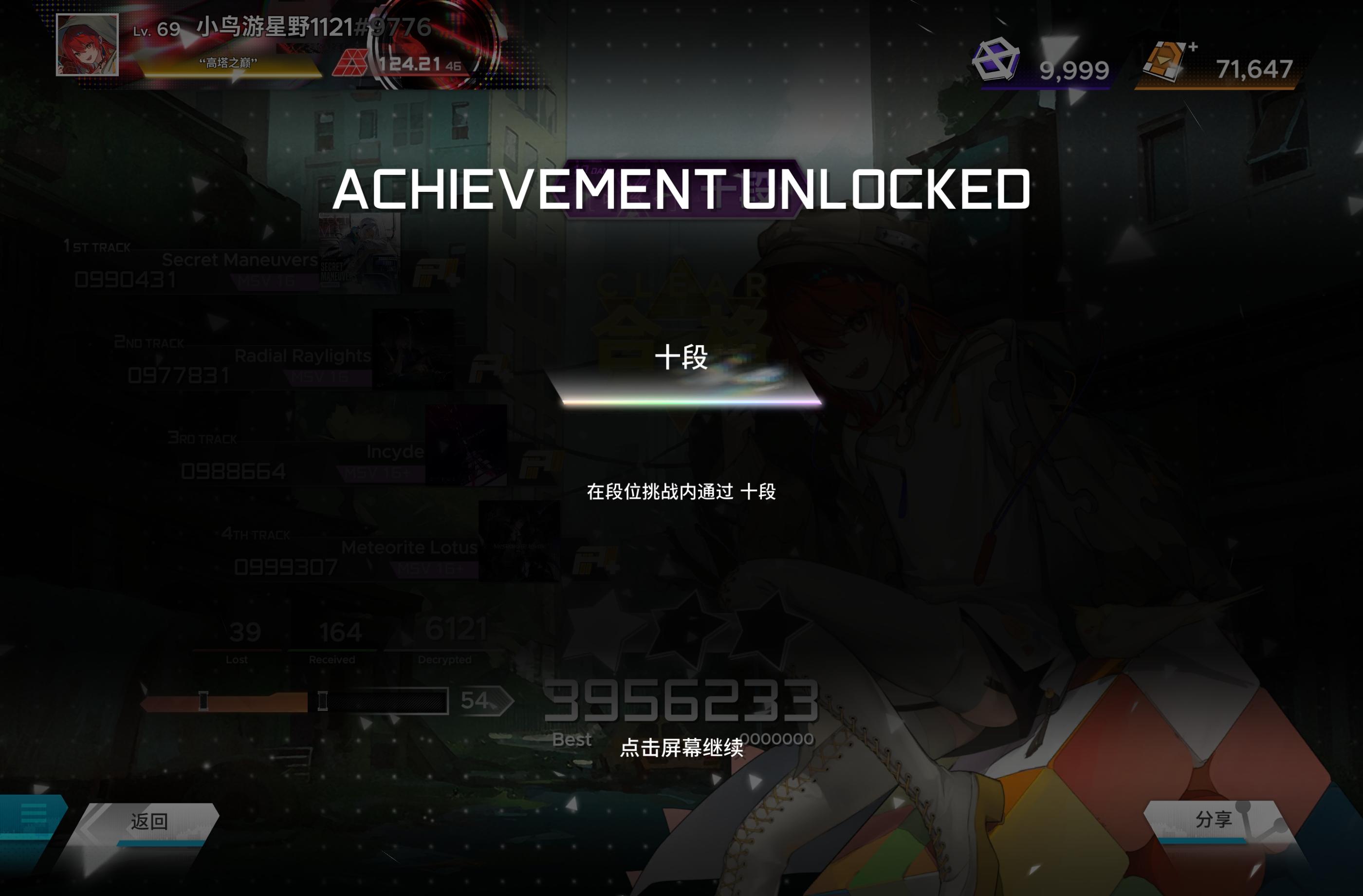 原本没想推石莲,结果10段最后一个歌是石莲,剩五滴血硬是打到54 差点鸟 ,很生气 于是就撞大运推了个鸟