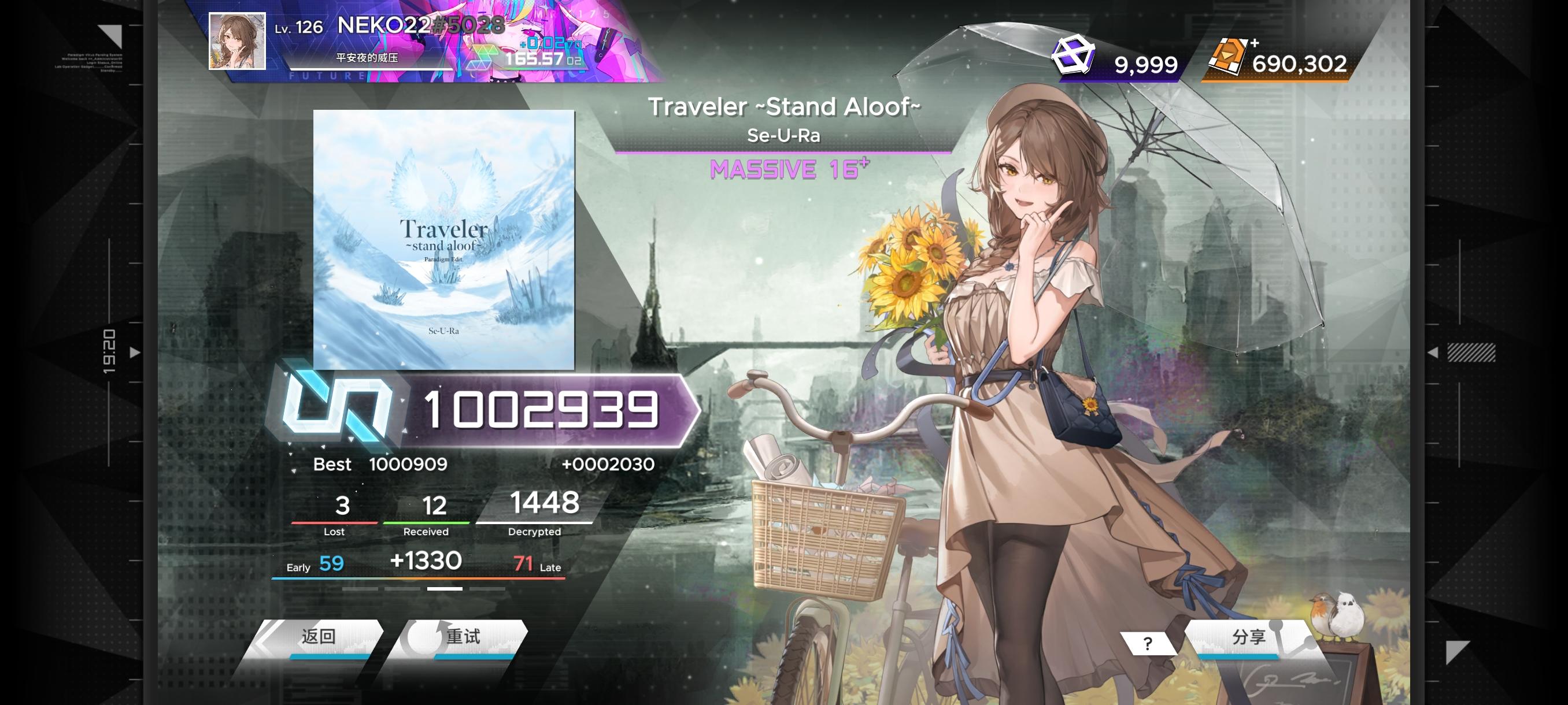 原本没想推石莲,结果10段最后一个歌是石莲,剩五滴血硬是打到54 差点鸟 ,很生气 于是就撞大运推了个鸟