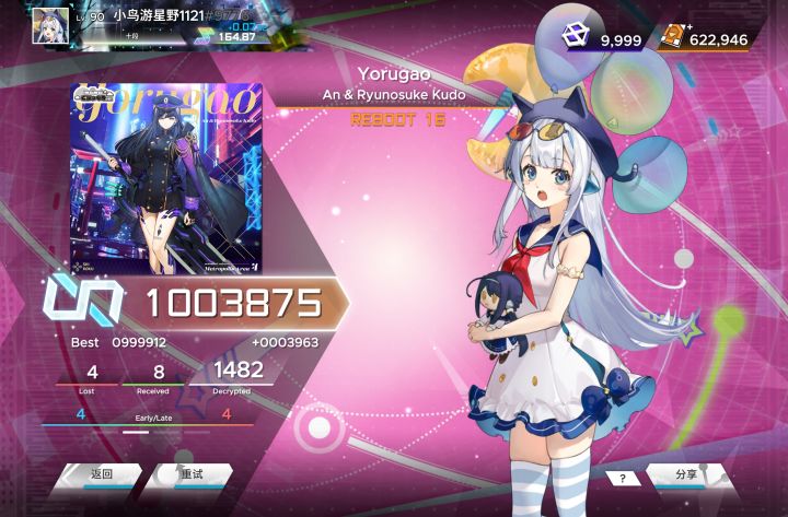 今日排排位分最极限的一把,对方准度也很高,再打歌的过程中好几处都差一点点就要爆绿了,最后与大佬极限1g相隔,击败对方,同时也感谢这位大佬能帮助我在这种极限环境下∞+星屑物语,再次渡劫全服前900,鄙人尊重您,也尊重每一位跟我PK过的人,十分感谢Hunter大佬