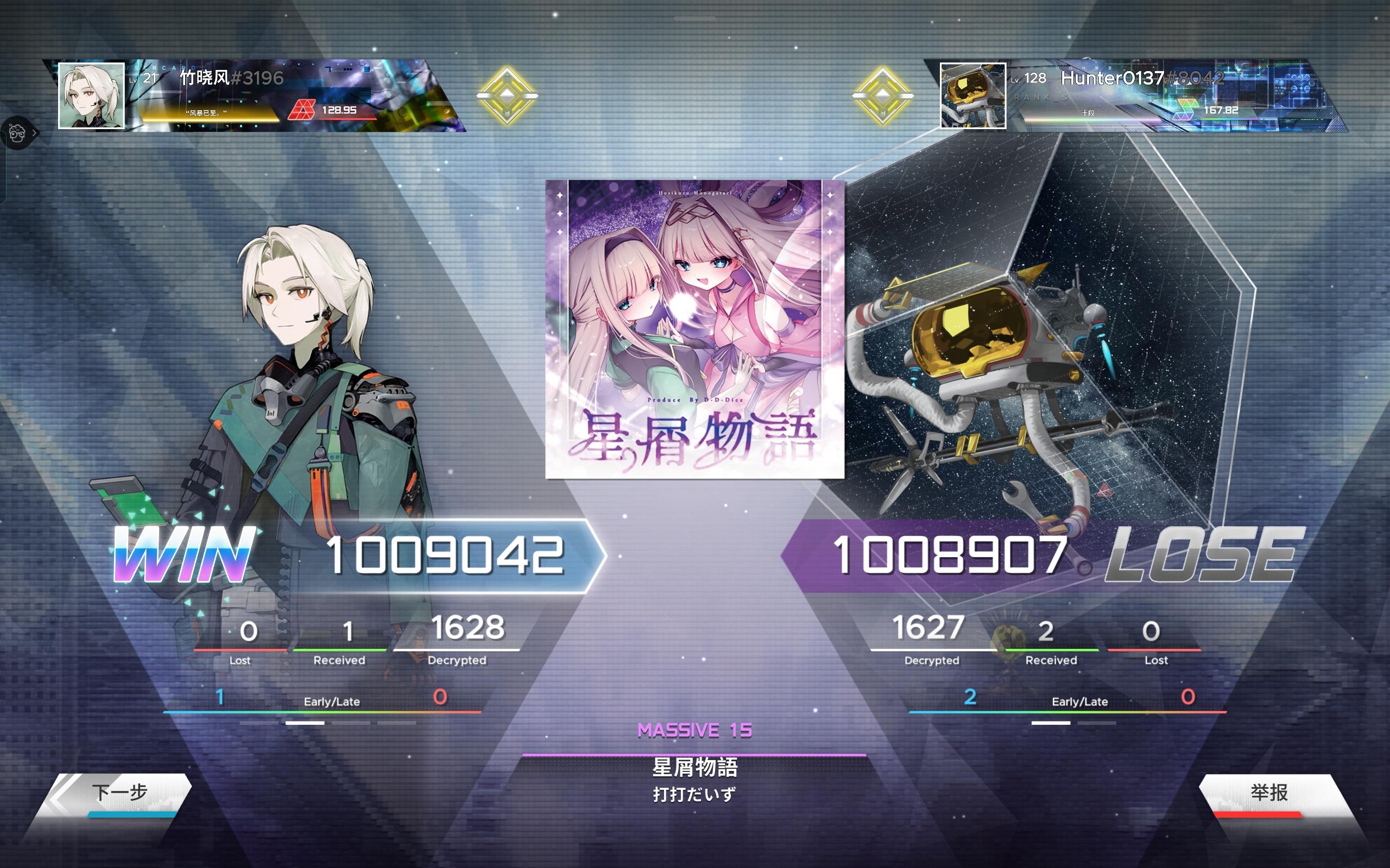 今日排排位分最极限的一把,对方准度也很高,再打歌的过程中好几处都差一点点就要爆绿了,最后与大佬极限1g相隔,击败对方,同时也感谢这位大佬能帮助我在这种极限环境下∞+星屑物语,再次渡劫全服前900,鄙人尊重您,也尊重每一位跟我PK过的人,十分感谢Hunter大佬