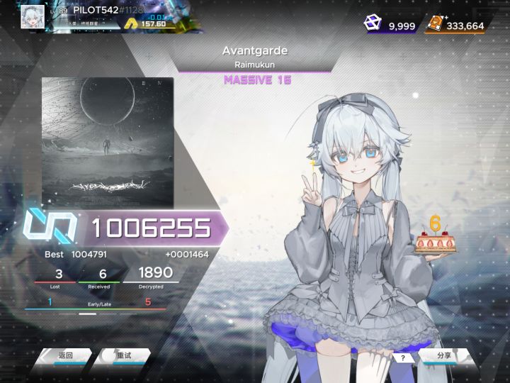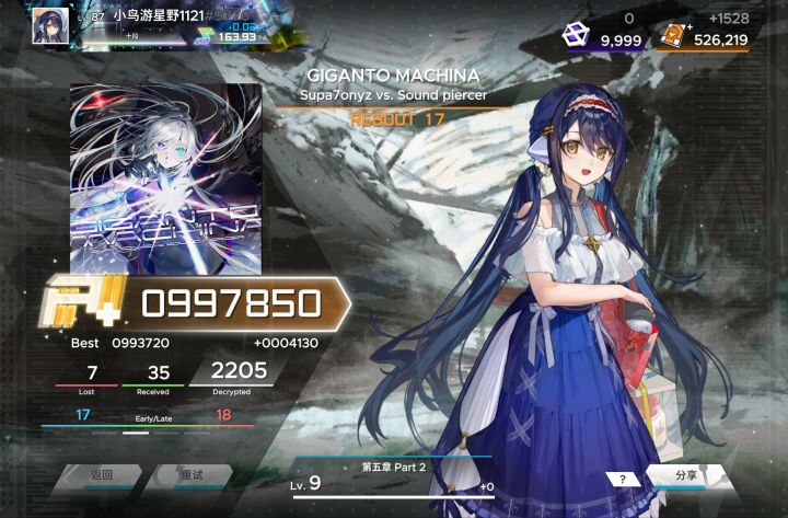 今日排排位分最极限的一把,对方准度也很高,再打歌的过程中好几处都差一点点就要爆绿了,最后与大佬极限1g相隔,击败对方,同时也感谢这位大佬能帮助我在这种极限环境下∞+星屑物语,再次渡劫全服前900,鄙人尊重您,也尊重每一位跟我PK过的人,十分感谢Hunter大佬