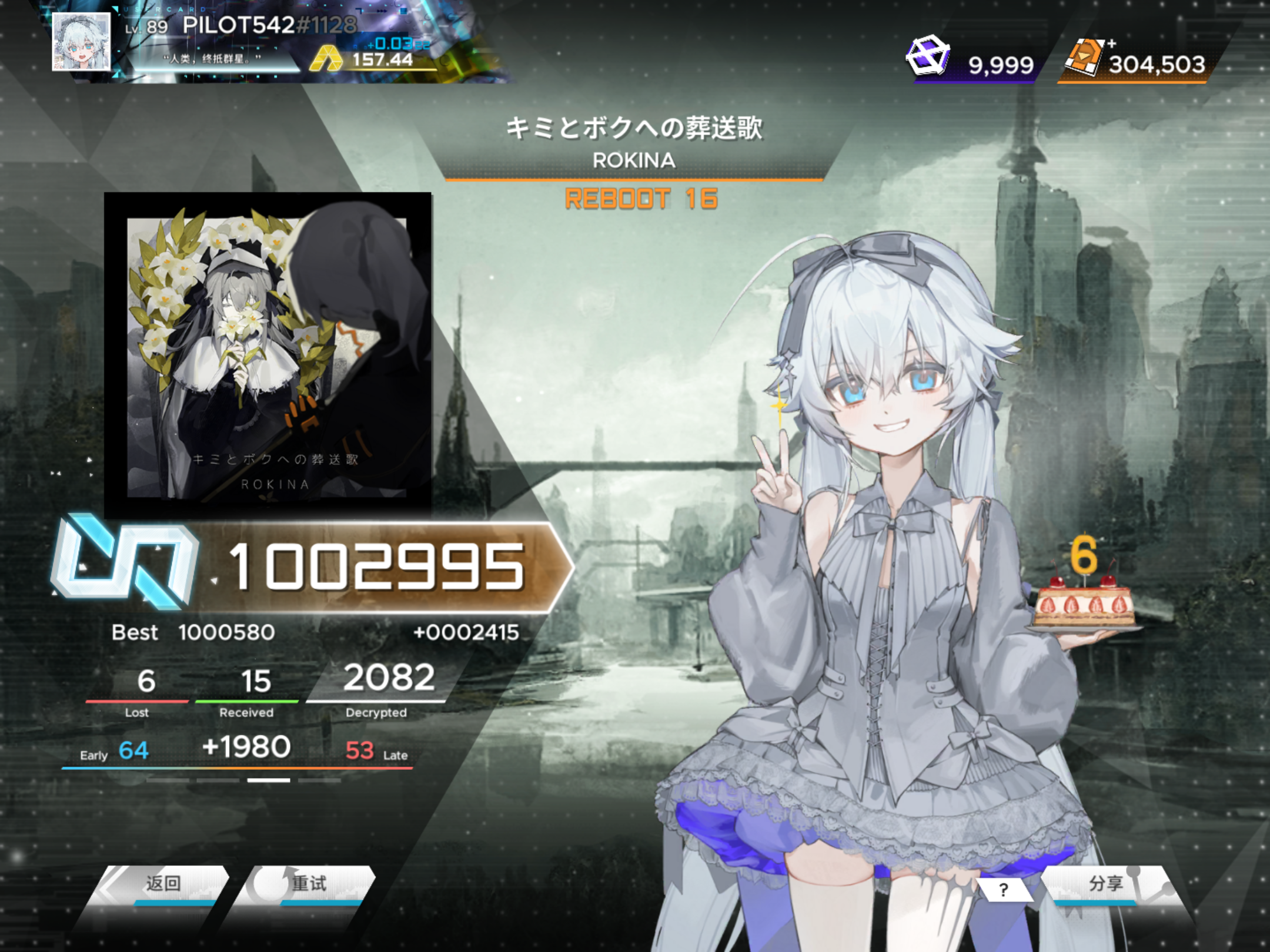 原本没想推石莲,结果10段最后一个歌是石莲,剩五滴血硬是打到54 差点鸟 ,很生气 于是就撞大运推了个鸟