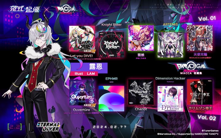 WACCA联动收藏集:ETERNAL DiVER,即将袭来!3位领航员与总计10首曲目的2个专辑包将一同登场!购买对应的专辑包并达成一定条件,即可解锁领航员“伊莉莎白”、“莉莉”与“露恩”!与此同时,两首主题曲《Let you DIVE!》和《Ouvertüre》将可通过数据颗粒兑换!其余8首曲目的信息也将于近日陆续公布,敬请期待!#国产游戏#独立游戏#音游#范式:起源#ParadigmReboot