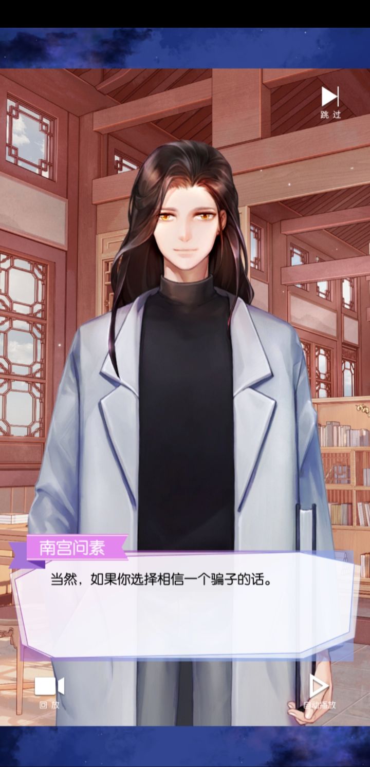 首先我个人认为乙女游戏比较重要的就是人物的立绘,立绘的好看与否较大程度上会决定玩家会不会玩下去, 然而,这个立绘实在有些过于敷衍了,当我看见南宫问素这个人物的立绘,我还以为是个路人,就整个立绘毫无特点可言,最重要的是我硬着头皮点下去之后,南宫问素的人物立绘配音是一个邪魅成熟音,但是他的设定明显是属于那种书香美人清冷文雅的感觉,我就当场破防😰😰😰还有后面出现明辞的人物立绘,就看着这个呆滞的眼神……就