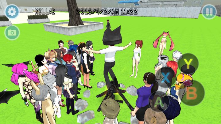 这个和病娇模拟器差不多吧。可以和NPC说话,送东西,互动可以吃食物和水,需用钱买钱可以通过杀人获得,但杀人时需看看老师在不在,不然老师看到会把你抓住(老师如果没看到你杀人但看到尸体会把尸体埋起来)npc会和物品互动,但目前只看到和球互动老师会上课还有NPC是有血量的,不再一刀砍死~杀完人后要去洗澡,右上角设置中点bloodng会显示你身上有血支持VR好像,没试过,可以在设置里调有