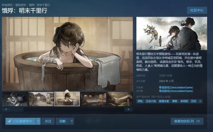 明末旅行题材文字冒险游戏《饿殍:明末千里行》steam商店界面已上线!