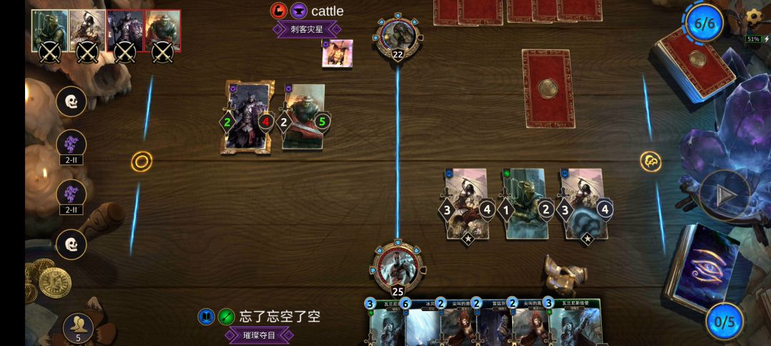 一般靠无限阴谋家吸血,理想状态如下 运气好(或者从另一方面说运气很不好,完全没抽到阴谋家组件。)的话,偶尔靠束缚也能打死人,即束缚别人然后直接冲脸。 【打法解析】 最好卡组没什么牌了(还有其他牌也能启动,过着过着就基本抽没了),并且最好>4张0费阴谋家在卡组,阴谋家占满一条战线后牺牲一个,洗一个0费进去,抽一张0费,配合骗子集市,0费洗一张抽一张,无限吸血。 起手预估对面是快攻,建议留拷打者/ao
