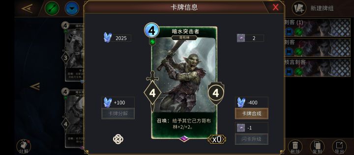 别问什么这么晚发(都赛季快结束了才发,嗯只能说永劫太香了),然后等我想起来的时候就3天结束(还是晚上10点的时候才想起来有这个东西)然后一看排位上好像没有多少刺客的牌(刚开始先着想上个传奇再发,然后第一天4段上到了三段,第二天打了一会从三段到了二段,然后又永劫去了)主要是2段3小段后没有连胜奖励后不太想打了时长有点长(加上刚毕业一年现在正在上班)言归正传,分享为上一套蓝绿的优化版本(这次上一
