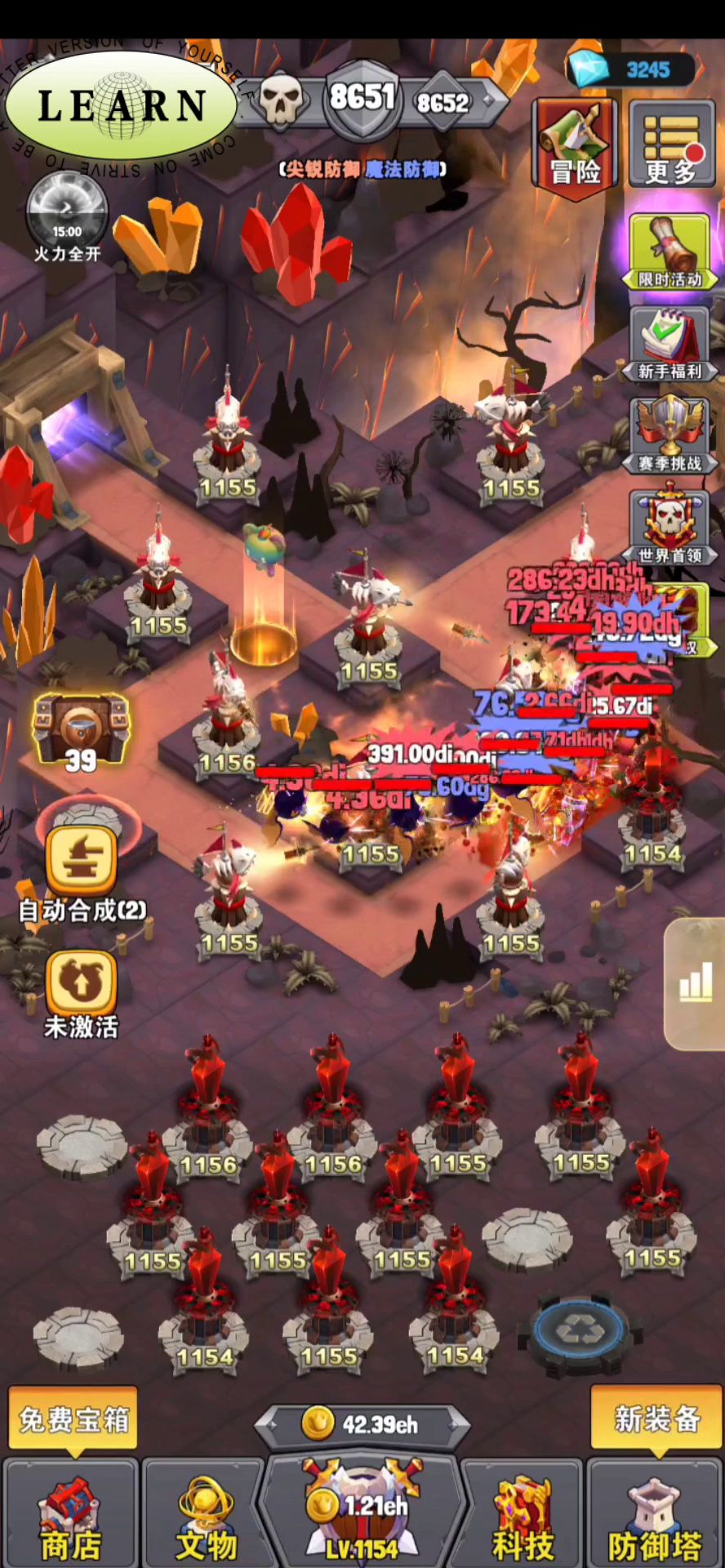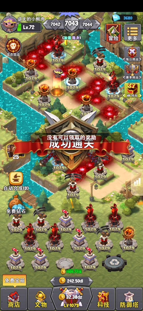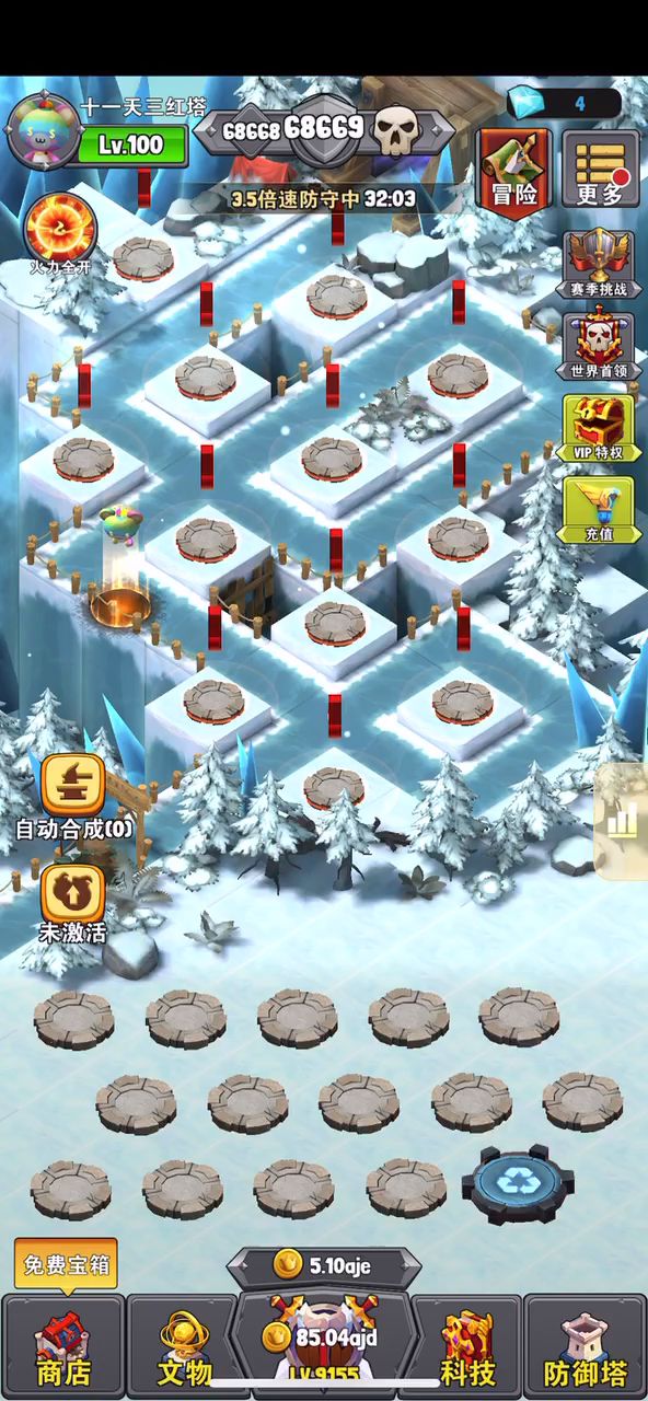 有换过设备吗?先挂一会儿机,升下防御塔过一下boss关卡,领完箱子再重生~