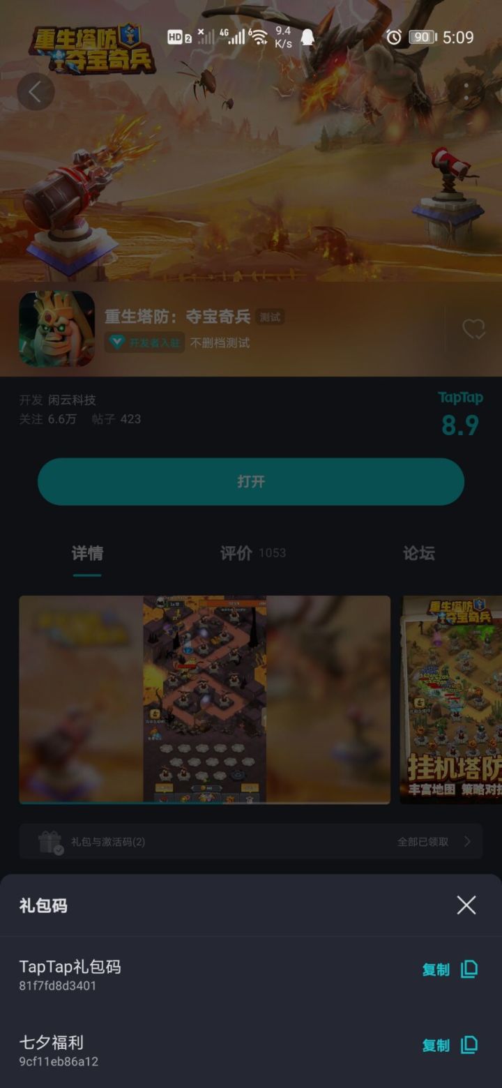 明天就是战果汇报的时间了哦!我看很多人今天都已经在汇报了~目前大家的战过都还不错啊!加油加油!另外怕你们不知道,提一嘴,7夕的礼包终于过审显示出来了,虽然迟到,但还是要说一下领取方式:1、使用安卓手机搜索游戏名:重生塔防:夺宝奇兵 进入游戏详情页2、下拉找到游戏福利3、点击领取七夕礼包,在游戏内兑换即可4、iOS的小伙伴可以找有安卓手机的朋友帮忙或者直接在模拟器上面下载TapTap领取
