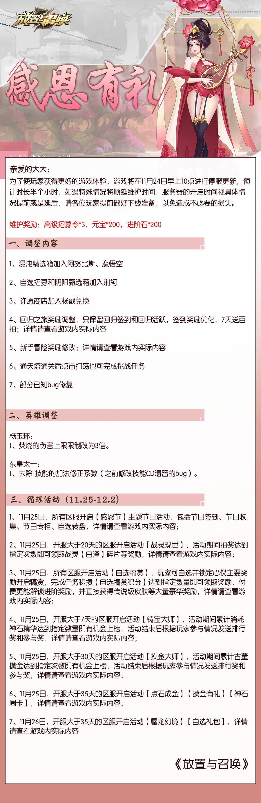 【感恩有礼】感恩节活动&杨玉环调整上线在即!