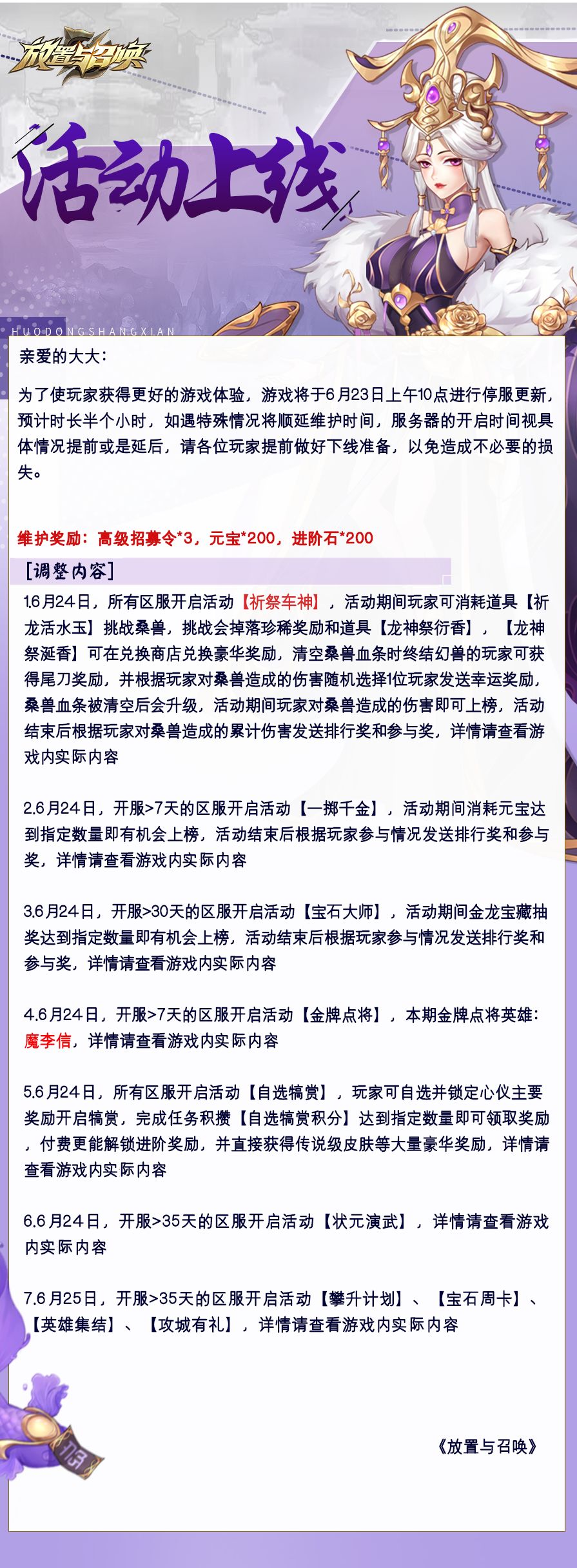 【重磅通知】:《放置与召唤》之维护更新通知