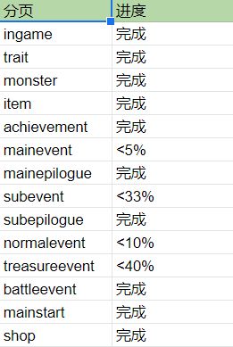 游戏中,需要翻译的内容分类在图2,这是初次翻译的进度,其后还有校对和润色环节。