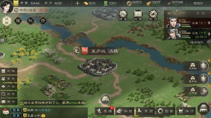距离一区开服已经是第六天虽然时间很短,但在江山这一款游戏里这六天的时间完美解释了什么叫策略国战SLG!第一天,秦国遥遥领先,以四个军团百余人(人口甚至更多)疯狂攻城,直接甩开其他五国一大截。基于此,秦国大有当初秦国东出,横扫六国之势。当然,各国除了跑马圈地,世界频道也是热闹非凡,秦国玩家叫嚣誓灭五国宗庙。第二天,由于秦国的人口大于另外五国的人口总数,且秦国玩家对五国多加羞辱,五国进行联盟
