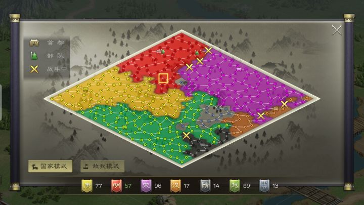 距离一区开服已经是第六天虽然时间很短,但在江山这一款游戏里这六天的时间完美解释了什么叫策略国战SLG!第一天,秦国遥遥领先,以四个军团百余人(人口甚至更多)疯狂攻城,直接甩开其他五国一大截。基于此,秦国大有当初秦国东出,横扫六国之势。当然,各国除了跑马圈地,世界频道也是热闹非凡,秦国玩家叫嚣誓灭五国宗庙。第二天,由于秦国的人口大于另外五国的人口总数,且秦国玩家对五国多加羞辱,五国进行联盟