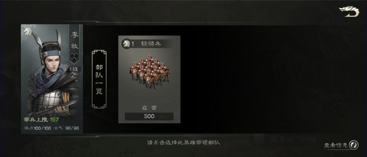 江山中,武将和士兵组成了一支完整的出场部队,为主公东讨西伐,立下了汗马功劳。当武将和兵种完美配合时就能在战场上拥有成倍的战斗力,本期我们就来为各位介绍提供完美出征部队编组的【部队/英雄】列表!主公可以在世界界面右上角的【部队/英雄】列表中管理麾下所有武将及其对应搭配的兵种。【部队列表】点击编组部队并选择任意一位空闲英雄作为部队将领,并为武将挑选率领的部队。整备完毕后,即可派兵出征,为主公一战