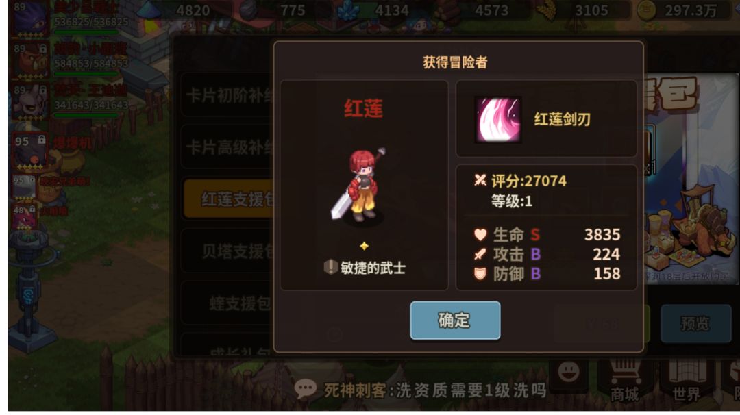 先说结论: 1.迷途红莲,YYDS!!!!无限晕是可以实现的;而大魔怪红莲伤害还行但功能性较差。 2.测试时武器、衣服,由于未转换强化,战力11w+,卡片仅置换等级,且为初始成长值。可发掘潜力较大。单刷秘5不是梦! 红莲英雄评测 1.果然,快乐风男一样的孤儿英雄,四转特性才是本体,濒死成神,但强势期一过就疲软了,必须在增伤结束前团灭怪物; 2.控制是天敌,但濒死红莲弱点摘除,大杀特杀,测试了巨石怪