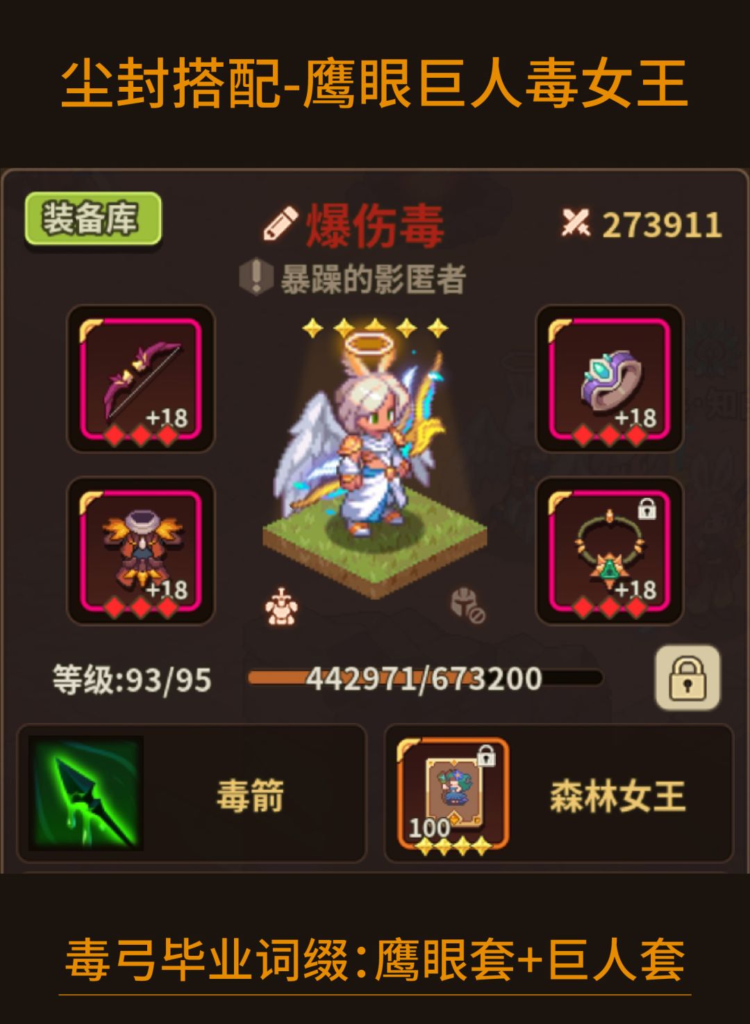继续上次的攻略,上次是一直到200之前,现在我自己也刷了几天,290还有余力,词缀没毕业,都是过度用的下面看看详细的,每个职业都有详细说 主C 女王毒弓 这里的词缀都只是过度能用,迟早得换的,然后我的构思就是所有词缀都上鹰眼,巨人,饱满系列,这样输出生存都会最大化,而且收益极高,但是锤子不够,只能先看着吧。 T 这里还是建议用嘲讽 我嘲讽其他装备都是破浪级别的,不想发,后续建议上巨人系列,然