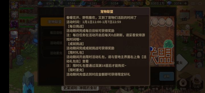萌新前期大纲1.升级顺序 集会所>铁匠铺>宠物围栏。前期优先升级这三样。2.派遣 无脑12小时去给人物涨经验的食物。3.前期钻石无脑抽怪物卡,先抽出第一张橙卡。因为需要看第一张橙卡是什么来决定以后的开荒队主c。(最好不要直接去抽怪物卡,去商城和商人买凭证更便宜,商城是每月刷新,可以买两次。商人是每日有概率刷新)人物篇:配队: 嘲讽➕主c(看第一张怪物橙卡)➕奶妈怪物卡: 嘲讽(紫卡熔岩