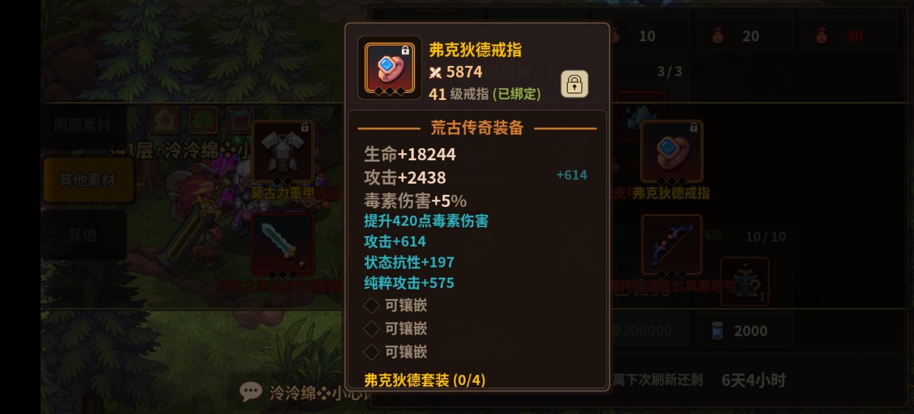 我对于元素戒指其实早就脱敏了但还是被这个号气笑了一个小号有戒指就算了,第二个也有而且谁家好人在 341 层,刚解锁秘宝一个金币十连,出 41 级元素戒哦顺带一提,号主是咚咚一想到某人下周甚至下个月玩啥都不出货,我就开始笑了