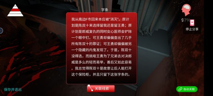 利用王勇实现了里世界,而且终于有联动了,王勇说出要给刘青春留点什么后,刘青春就能看到金属棒了。