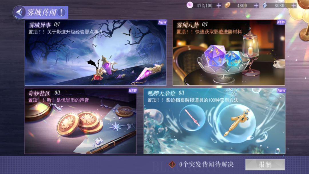 前言:所有内容都基于晨曦测试版本,公测变化请以实际情况为准! 一、影迹升级 提高影迹的调查效果值。点开影迹再点击所选影迹界面可查看具体信息,可通过升级、进化、档案解锁等方式提升影迹的调查效果,以下简单列举几种常见获取方式: (1)通过【传闻】可获取影迹养成材料,例如【传闻-雾城异事】可获得影迹的升级材料,【传闻-雾闻八卦】可获取影迹的进阶材料,【传闻-呱唧大杂烩】可获得影迹档案的解锁道具; (2)