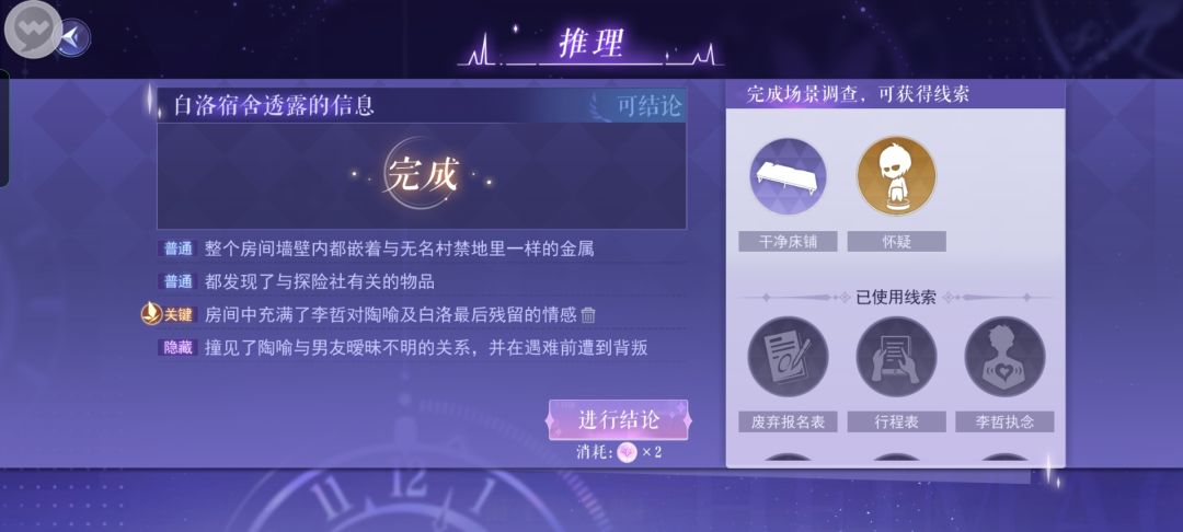 推理关键选择白洛执念。(具体见下面图。)