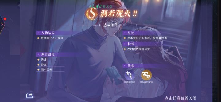 1.主要是关于罗琼的一切这个线索,要达到2/3,只达到1/3是打不出s的。罗琼一切在楼下。(这里不要用快速调查,会漏掉一条罗琼的一切,需要自己手动重新调查一下)2.然后3-5 简恒那里要带谈判的卡牌才行3.(11.10号补充)雕塑那里正确的涂色如图。如果不是这么涂的小司汤达的状态会是堕落,只能打出a结局打不出s(待考证)当然 1和2的前提是前面的流程都走对啦~可以翻一下帖子论坛里有人发了的