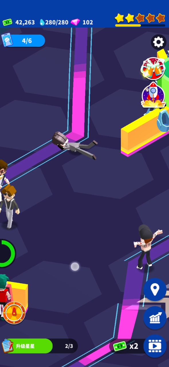 这个游戏想快速升级看广告就完了!把手机看到发烫!把自己看到睡着!目前我已经玩到夜店厕所了,就是街区、飞机场、夜店厕所的钱不流通,街区飞机场已经通关,收的钱没地方花了,希望官方可以优化一下,不要一味投放广告!